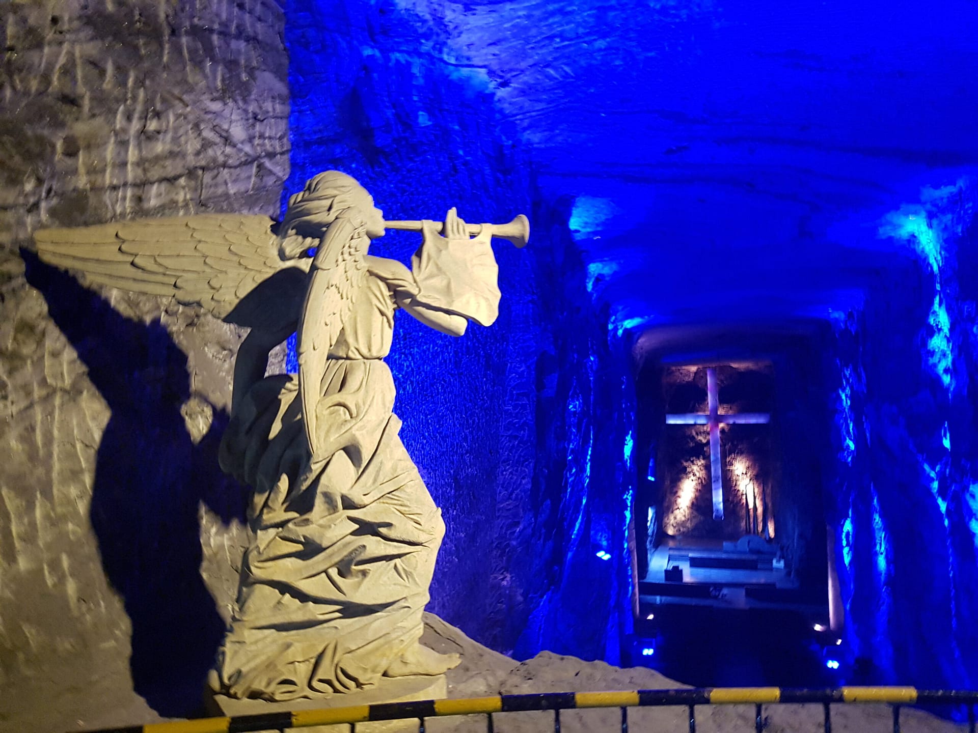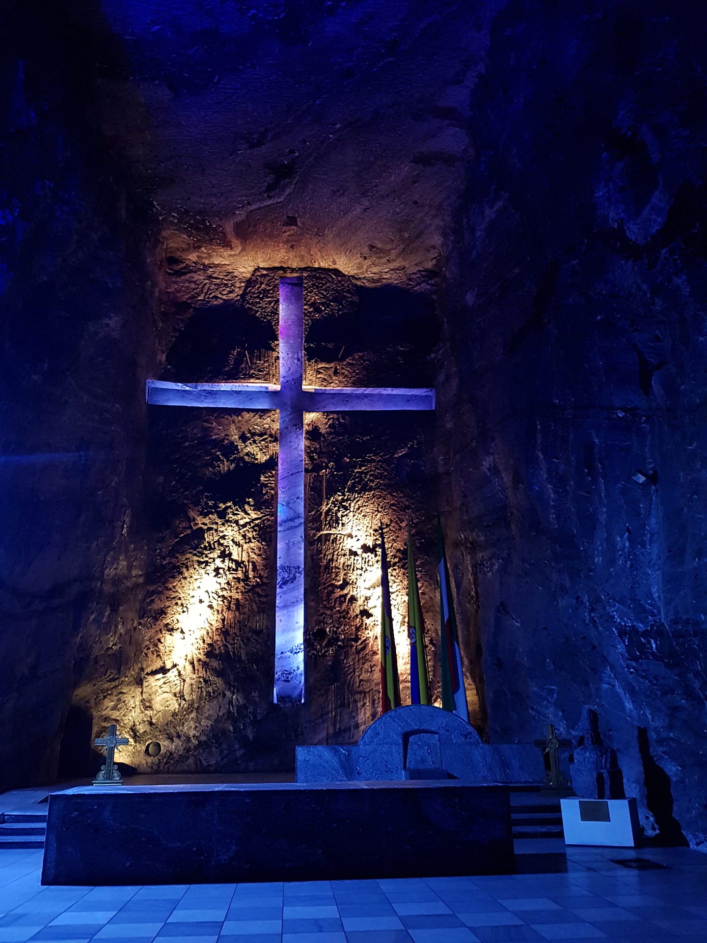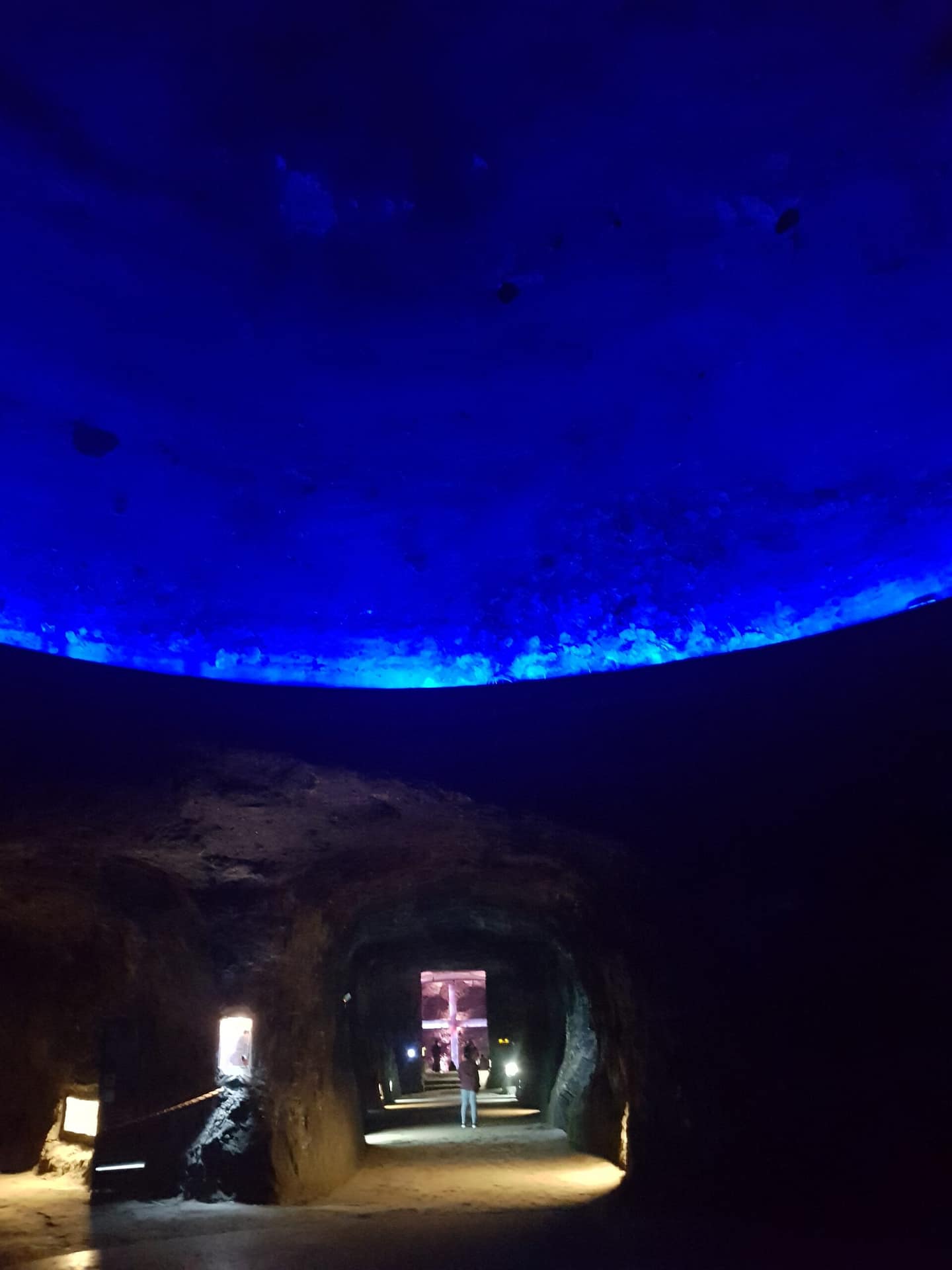 Um 08.00 Uhr beginnt unsere Tour zur Catedral de Sal. Wir haben wirklich Glück, da außer uns nur eine weitere Frau dabei ist. Der Fahrer ist super nett und erklärt uns noch einmal vieles zu Bogotá und Kolumbien im Allgemeinen. Die Catedral de Sal befindet sich in einem stillgelegten Teil eines Salzbergwerks. Mit unseren Audioguides betreten wir den Stollen und laufen immer weiter und sind schnell recht tief unter der Erde.