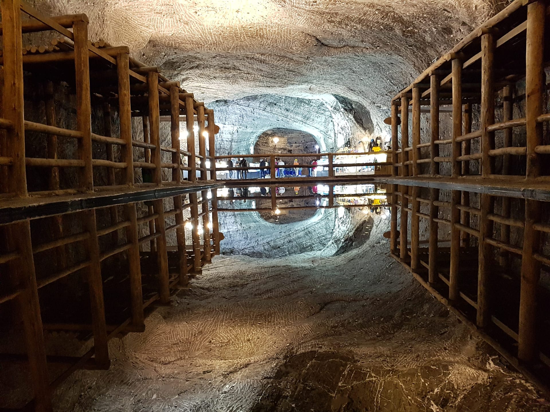 Zu Beginn gibt es einen Kreuzgang, der von den früheren Bergleuten in ihrer Freizeit (!) nach der regulären Arbeit in nicht mehr benutzten Stollen erschaffen wurde.