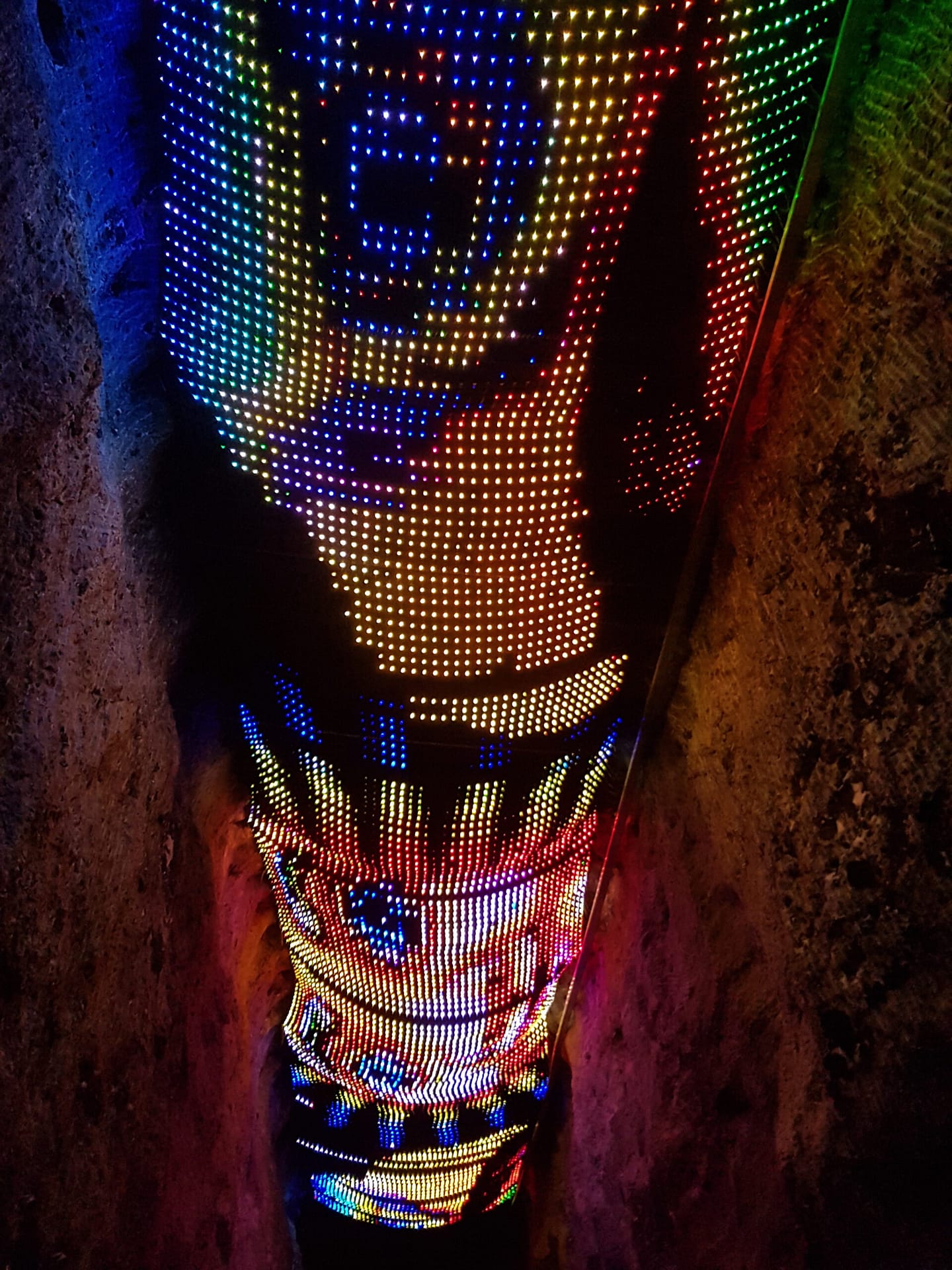 Wir geben die Audioguides ab, die uns wirklich geholfen haben den Hintergrund des ganzen zu verstehen und besuchen noch den nicht-religiösen Teil des Ganzen, in dem es Stände mit typischen Smaragdschmuck, ein Kino mit einem Film zur Geschichte des eben gesehenen und eine Lichtshow gibt.