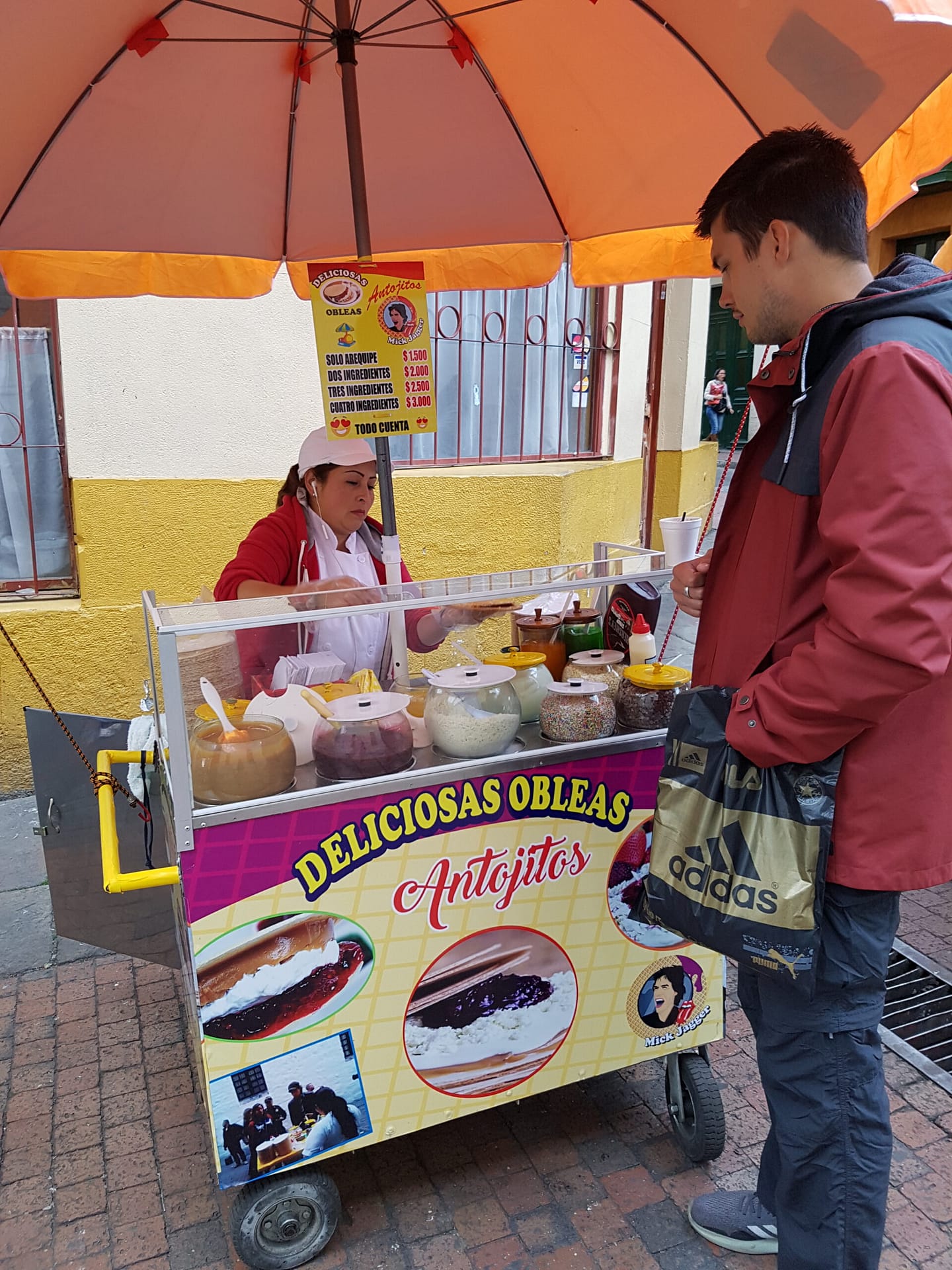 Gegen 14.00 Uhr fahren wir zurück zum Hostel, wo wir einen kurzen Mittagsschlaf brauchen. Danach laufen wir noch einmal durch die Stadt und probieren verschiedenes Street Food, wie Aromatica Tee mit Rum und eine Art Oblate mit wählbarer Füllung. Im Anschluss kochen und packen wir für unseren morgigen Flug nach Cali. Im Gegensatz zu den Amerikanern, mit denen wir noch ziemlich lange Karten spielen, werden wir es auch schaffen, unseren Flug zu bekommen.