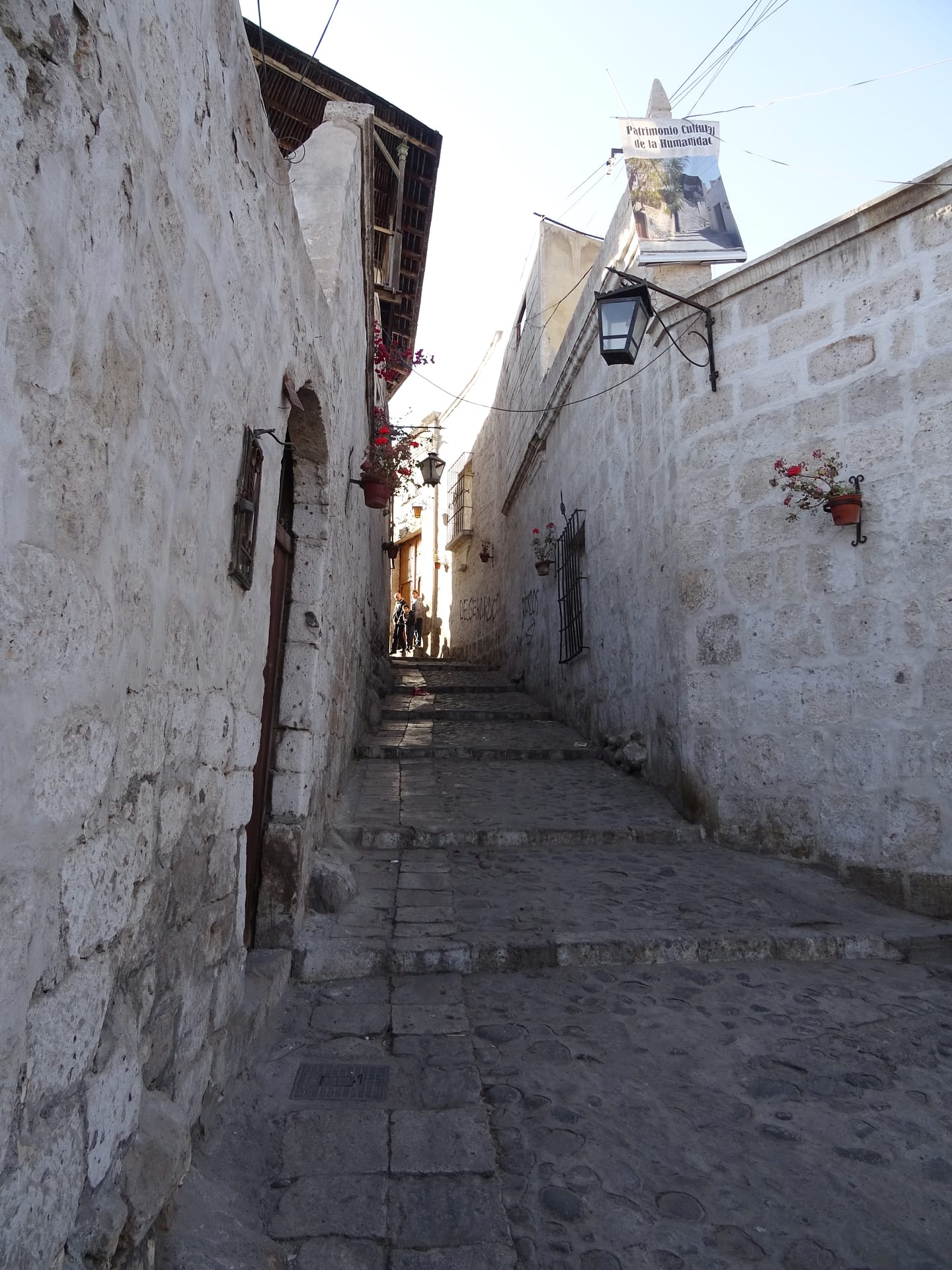 Zum Abschluss der Tour gehen wir über die älteste Strasse in Arequipa (die übrigens auch Weltkulturerbe ist) zu einem Aussichtspunkt. Von hier aus hat man einen tollen Blick auf die Stadt und die umliegenden Vulkane. Bevor wir wieder Richtung Hostels gehen, genehmigen wir uns noch ein „Käse Eis“. Dies ist einmalig in Peru und nur in Arequipa zu bekommen. Es handelt sich dabei aber nicht wirklich um Käse Eis, sondern um Kokoswasser, Vanille und Milch, was zusammen in einem kalten Behälter gerührt wird und dieser Vorgang ähnlich aussicht wie die Herstellung von Käse.