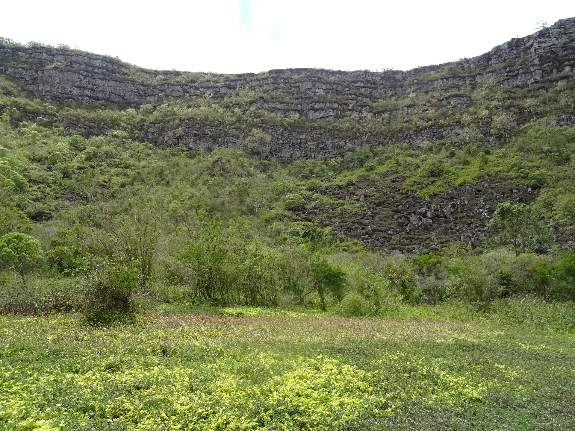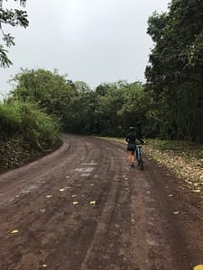 Heute haben wir den ganzen Tag zu unserer Verfügung die Insel Santa Cruz zu erkunden. Da wir gestern so viel Spaß beim Radfahren hatten, entschließen wir uns das gleiche heute zu tun. Also leihen wir uns nach dem Frühstück 2 Fahrräder aus und lassen uns die besten Routen zeigen. Wir entscheiden uns für den 21km entfernten Nationalpark mit einem kollabierten Vulkan als Highlight. Was uns leider nicht gesagt wurde, ist, dass die 21km nur bergauf gehen…entsprechend anstrengend und langwierig ist die Fahrt dorthin (einige Male haben wir die Fahrräder auch schieben müssen, da die Anstiege zu steil waren). Nach gut 2 Stunden ist es geschafft: wir sind angekommen. Unsere Beine sind ziemlich fertig und die Oberschenkel brennen aber wir sind am Ziel.