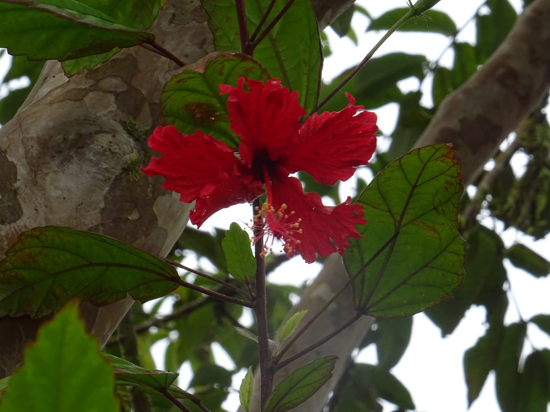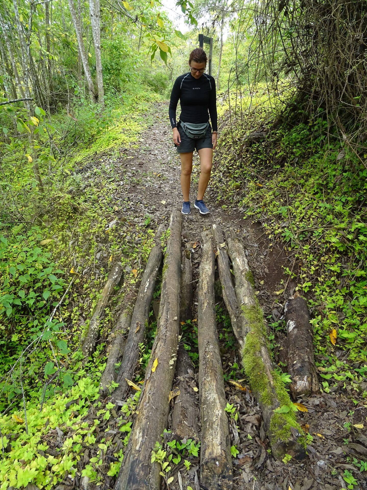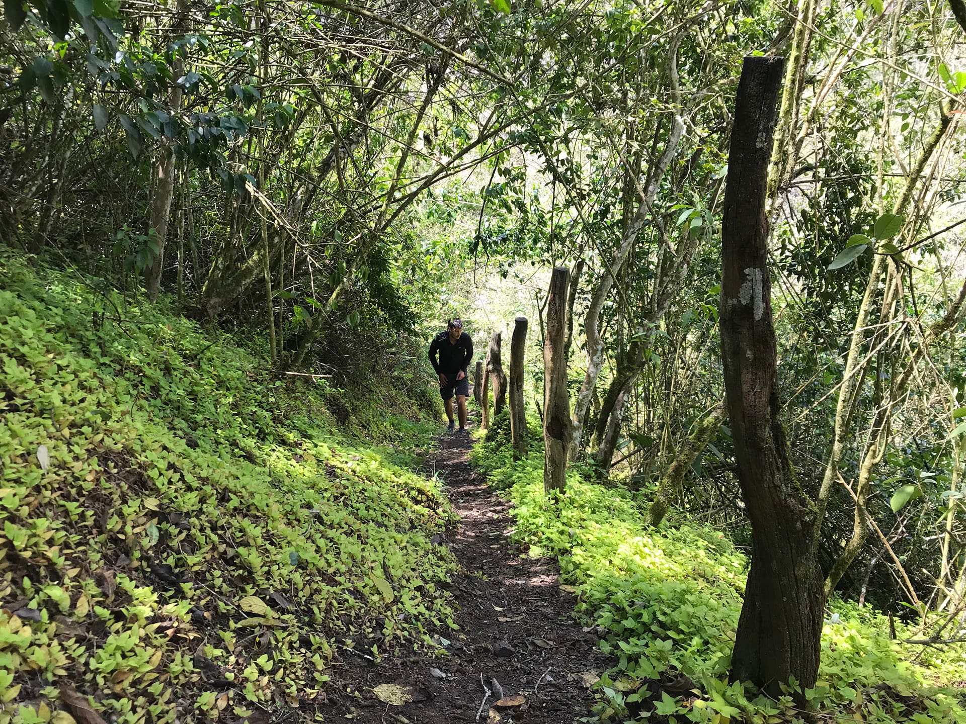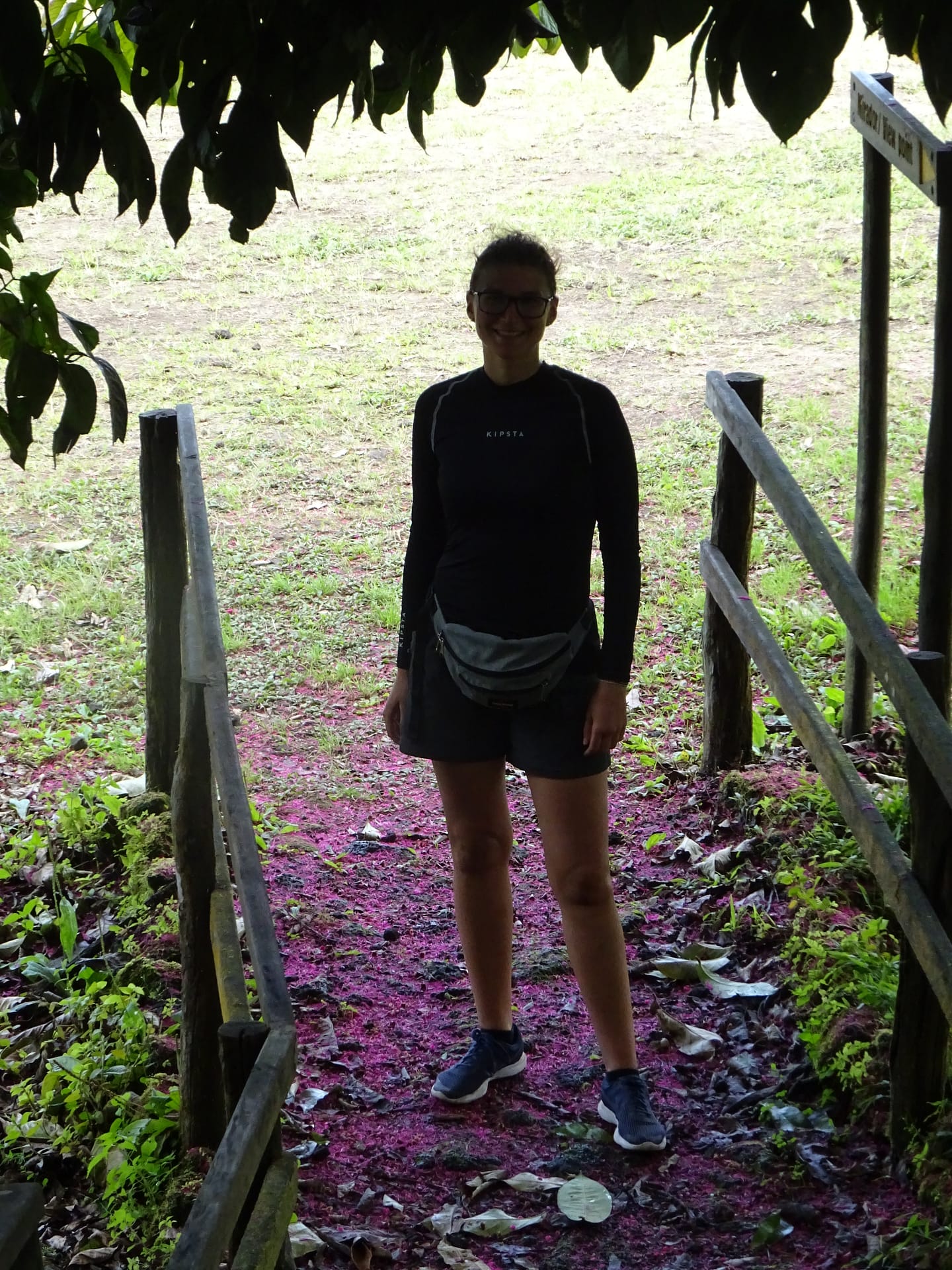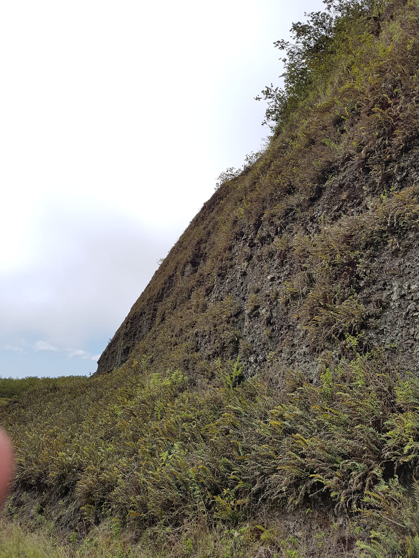 Der Weg ist teilweise sehr rutschig durch die vielen kleinen Lavasteine. Und dann passiert es: Alina rutscht an einer der steilsten und rutschigsten Abschnitte weg und fällt ein wenig den Abhang runter. Zum Glück ist die Stelle sehr dicht bewachsen, einige Meter weiter oben wäre sie mehrere Meter die Böschung hinunter gerutscht. Leider hat sie sich dabei auch den Fuß so sehr weh getan, dass sie kaum Auftreten kann. Wir beschließen, dass ich schnell (aber vorsichtig) runter gehe und ein paar Bilder mache und wir dann zurück fahren.
