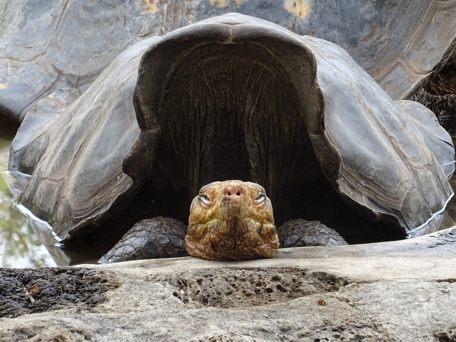 Da wir noch etwas Zeit haben bis wir die Räder abgeben müssen, fahren wir noch zum nahegelegenen Charles Darwin Research. Neben vielen Informationen zu den Tieren und zum Teil auch Geschichte von Galapagos, gibt es hier eine große Aufzuchtstation für Riesenschildkröten. Am Ende lassen wir uns noch einen Stempel in den Reisepass machen bevor wir zurückfahren und die Fahrräder abgeben.
