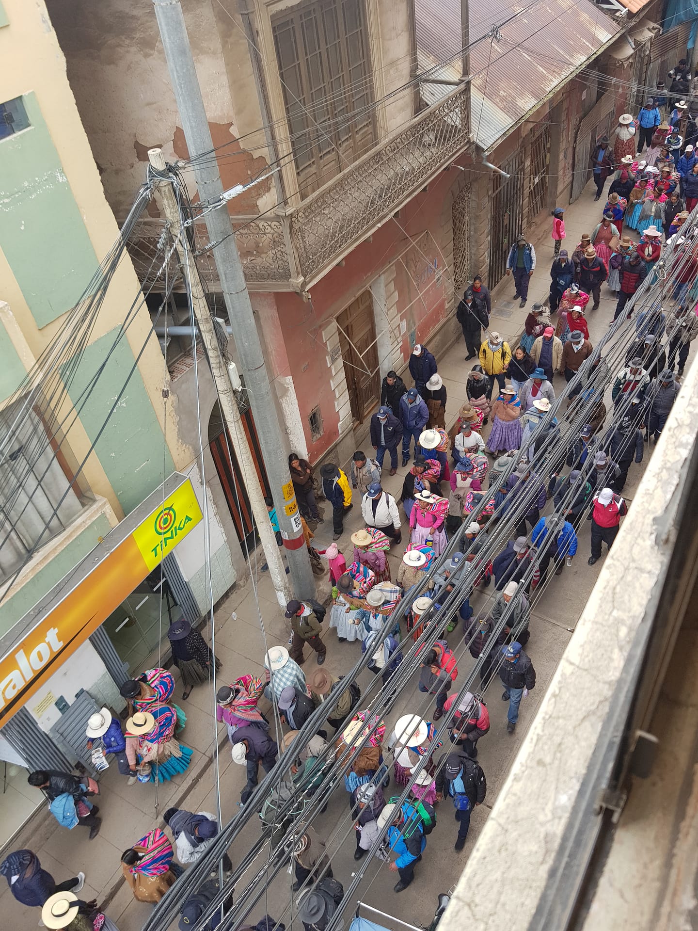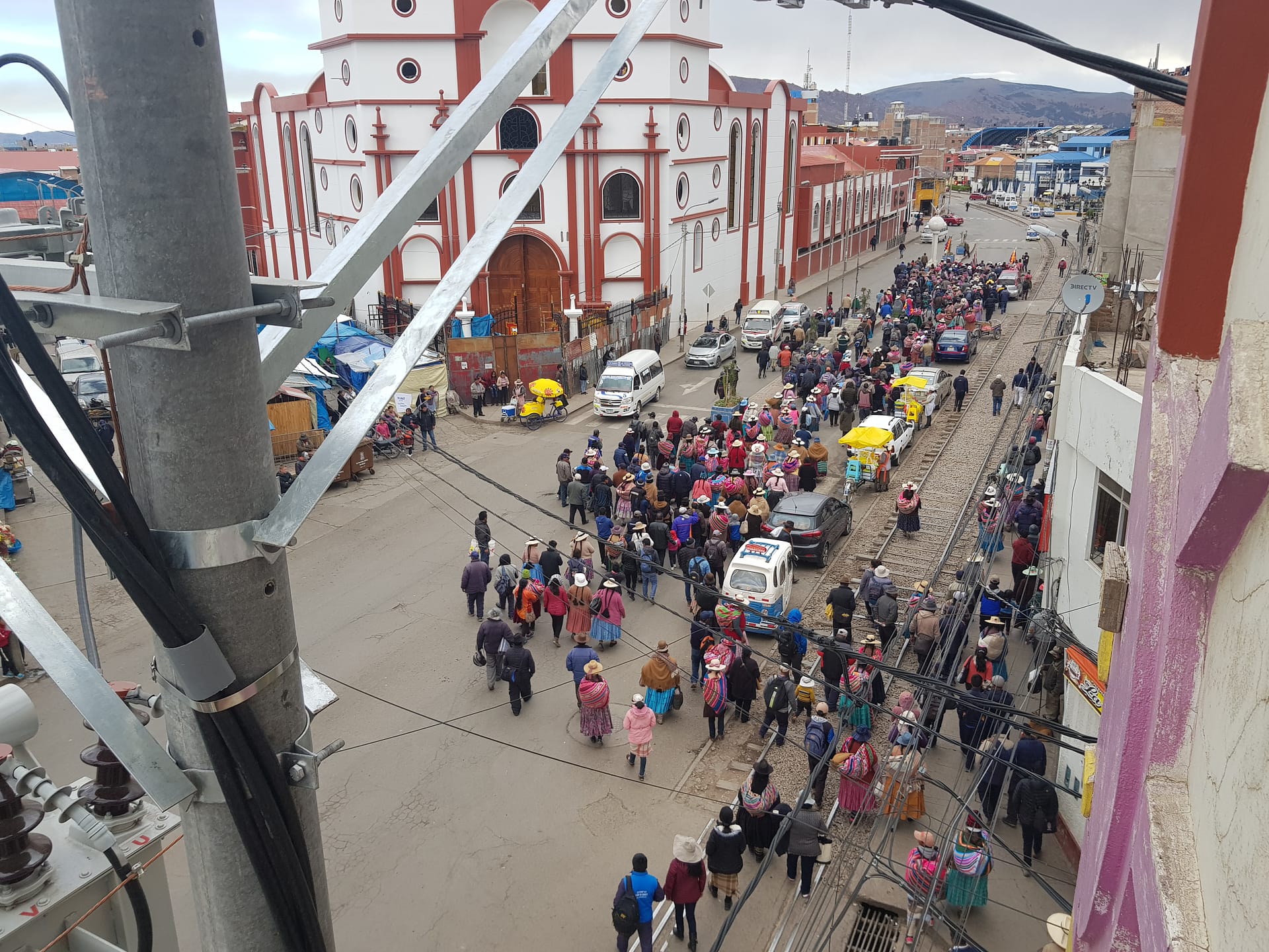 Gegen 16.00 Uhr kommen wir wieder in Puno an, wo uns eine Überraschung erwartet. Alina hat eine Nachricht von unserem Busunternehmen für morgen (Fahrt nach Copacabana in Bolivien) bekommen. Die nächsten beiden Tage streiken die Busfahrer in Puno und somit können wir hier nicht weg. Wir versuchen an der Rezeption im Hostel nach Alternativen zu suchen aber werden nicht fündig. Einen Hoffnungschimmer gibt es noch, dass morgen Abend ein Bus fährt aber die Bestätigung kriegen wir erst morgen früh.