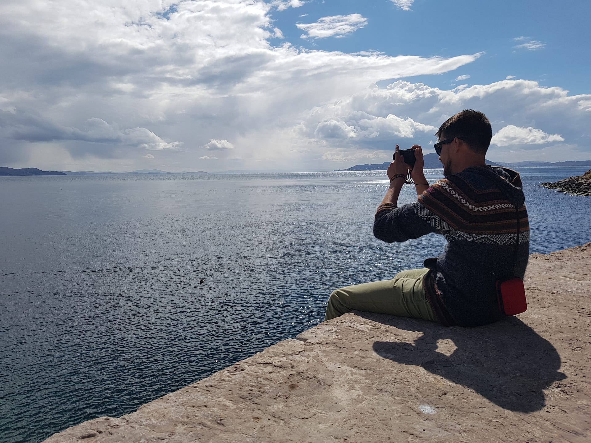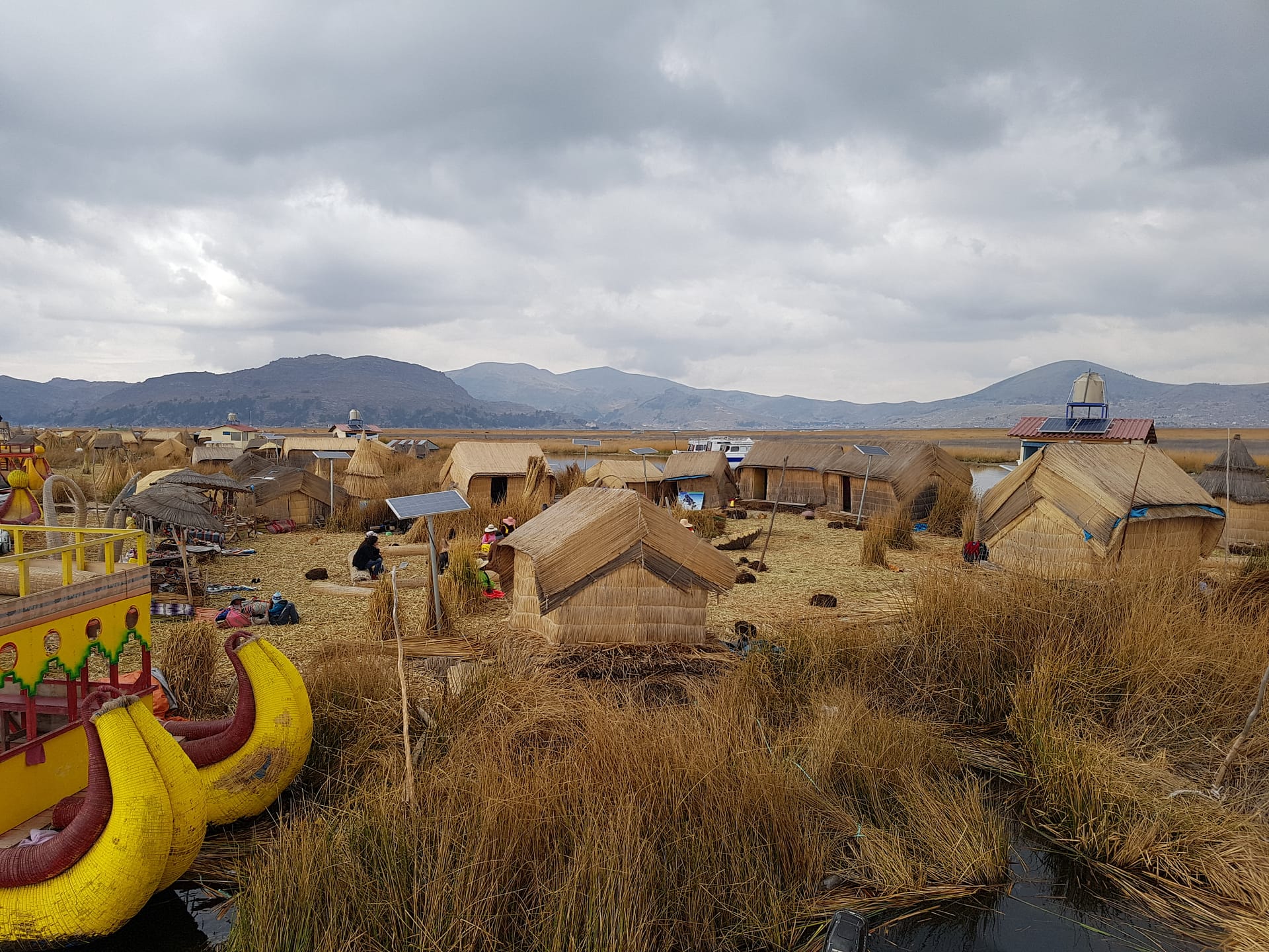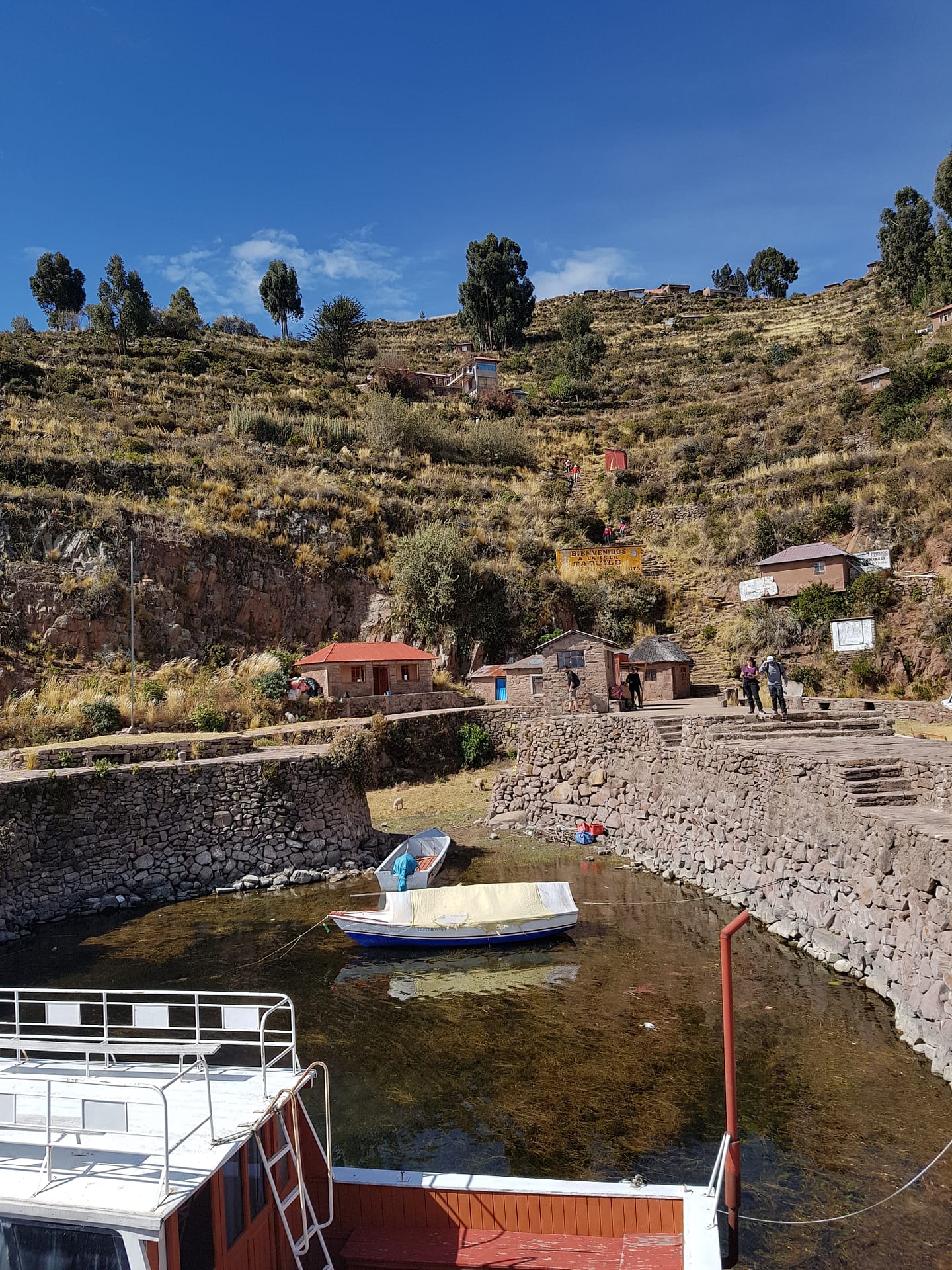 Gestern haben wir eine Tour auf den Titicacasee gebucht. Zum einen steht Uros auf dem Programm, was eine menschengebaute, selbstschwimmende Insel ist. Hier wird uns erklärt wie die Insel gebaut und in Stand gehalten wird. Außerdem dürfen wir die Häuser / Hütten der Bewohner besichtigen, die uns dort ihre Arbeiten zeigen und natürlich verkaufen wollen. Da wir aber nur begrenzt freien Platz in unseren Rucksäcken haben, kaufen wir nichts. Dafür unterstützen wir die Uros, indem wir in ihrem „Mercedes“ zur anderen Insel fahren, um dort einen Stempel in den Reisepass zu bekommen.