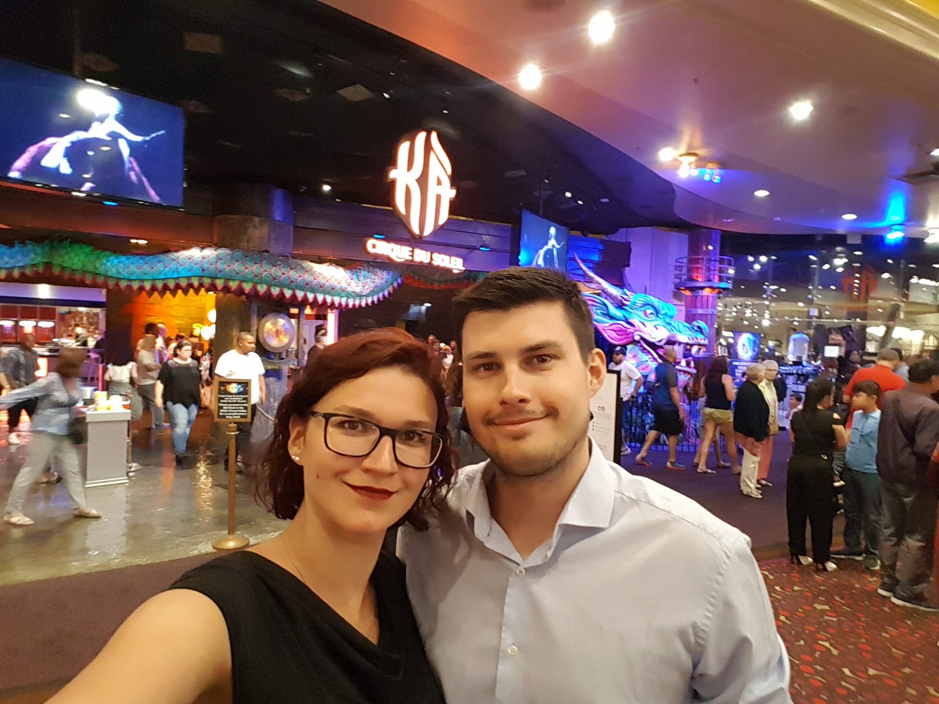 Nach einiger Zeit kommen wir auch dort an, allerdings ist der Rückweg ein ziemlicher Sprint, da wir uns noch richten müssen für die Show, die um 19.00 Uhr beginnt. Zum Glück findet diese direkt gegenüber im MGM statt, was sehr praktisch ist, da wir nur 5 Minuten hinbrauchen. Die Show an sich ist super schön, vor allem die Akrobatik der Künstler und die 360° drehbare Bühne, machen es zu einem unvergesslichen Erlebnis.