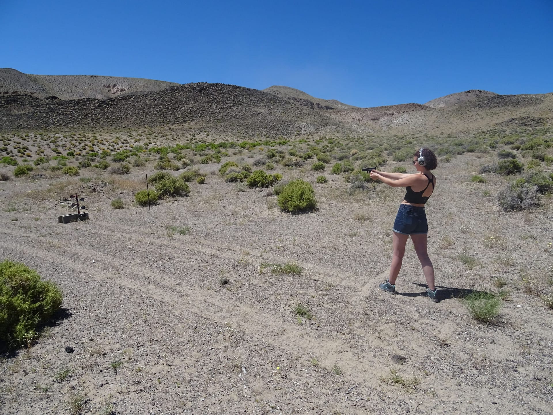 Nach kurzen Vorbereitungen bekommen wir dann die Einweisung für die Benutzung der 9 mm Glock und eines 22 mm Gewehrs. Dieses ist wider meine Erwartungen deutlich leichter zu handhaben als die Glock. Es macht wirklich Spaß, ist aber vor allem auch am Anfang sehr respekteinflößend und mit der Zeit auch ziemlich anstrengend. Für absolute Anfänger sind wir aber anscheinend wirklich nicht schlecht, da wir die Metallscheiben echt oft treffen.