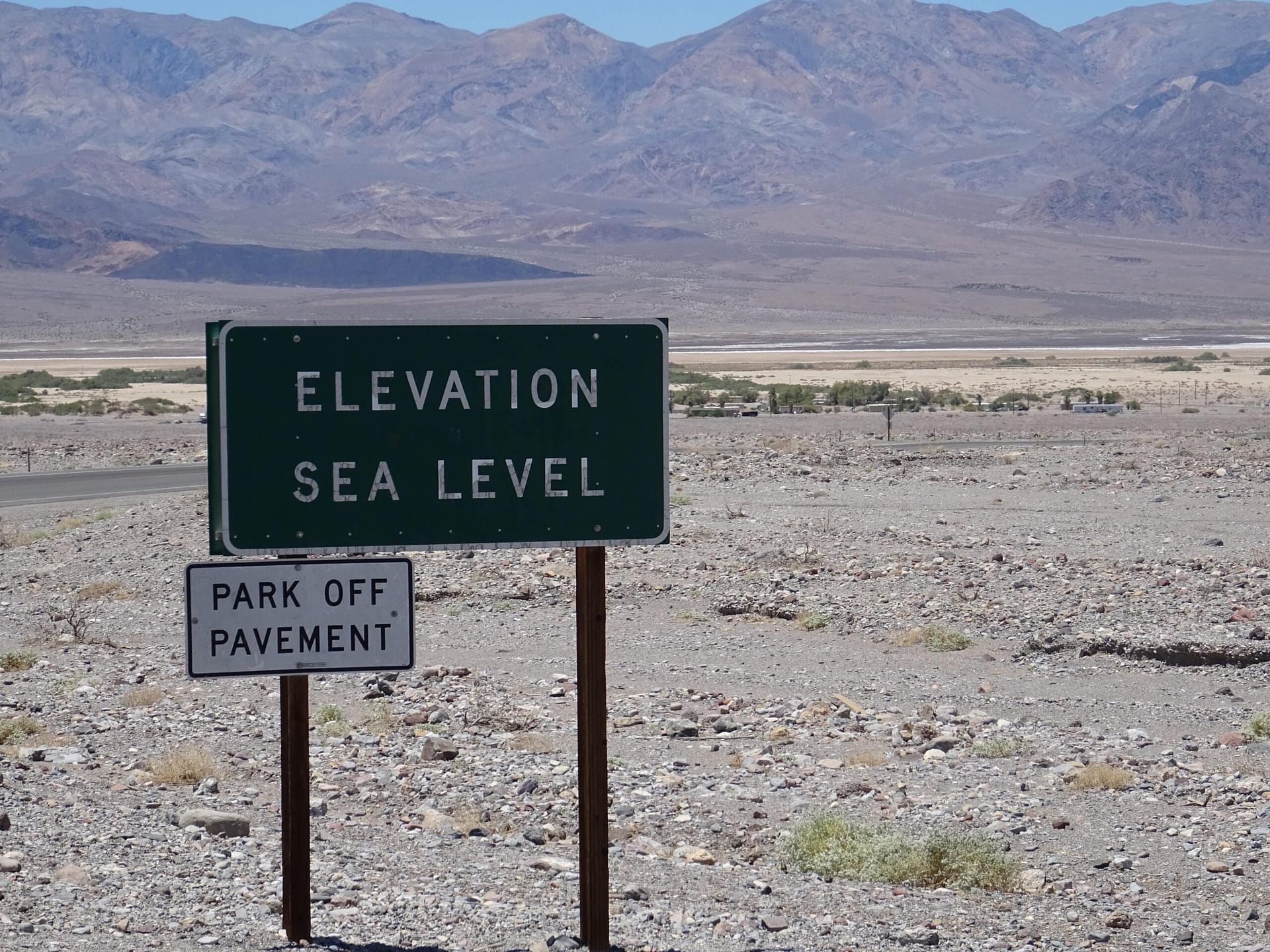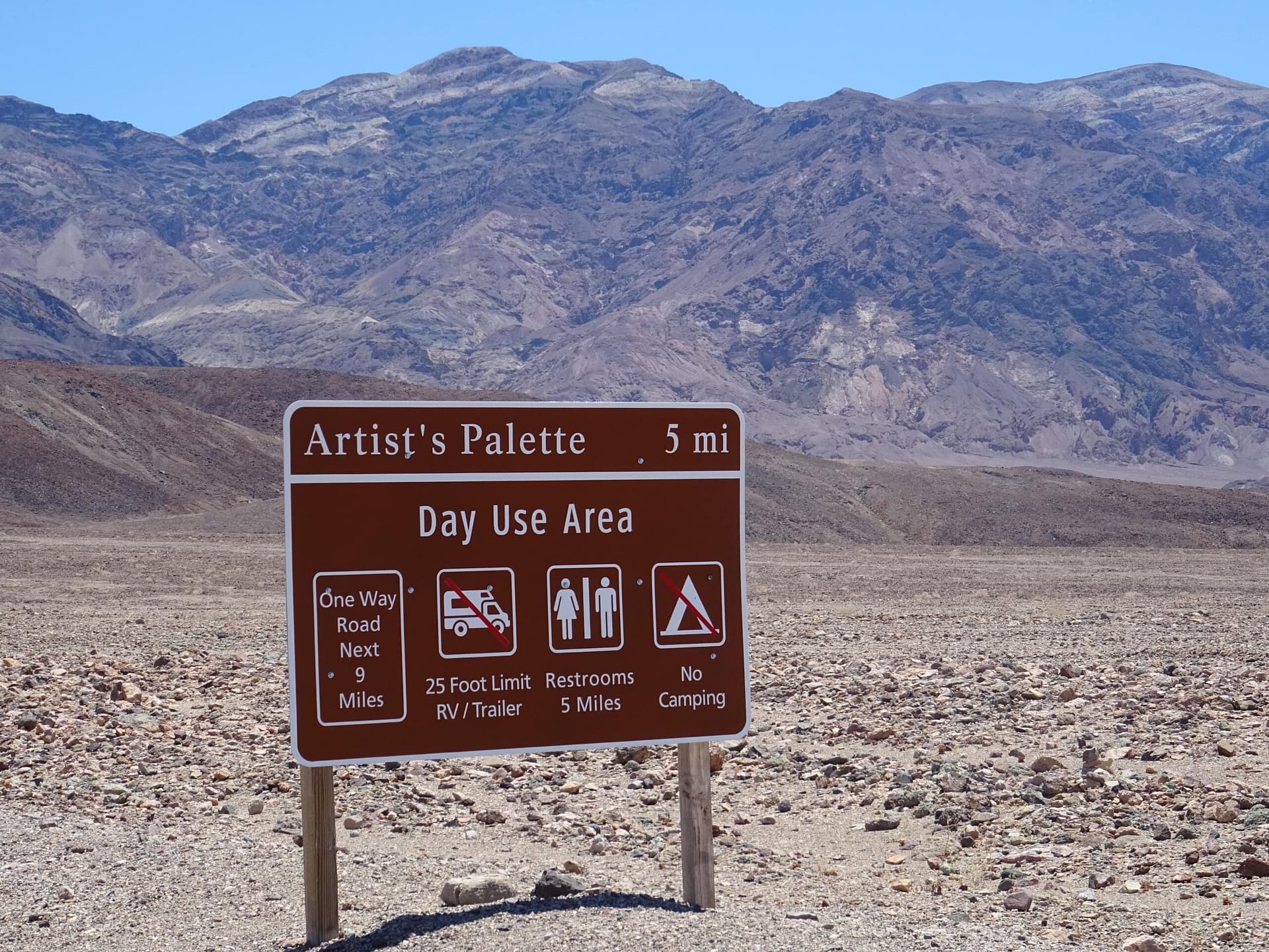 Eine typische Info im gesamten Nationalpark ist das Stopp Schild, welches auf die Hitze hinweist… wer rechnet denn damit im Death Valley…?