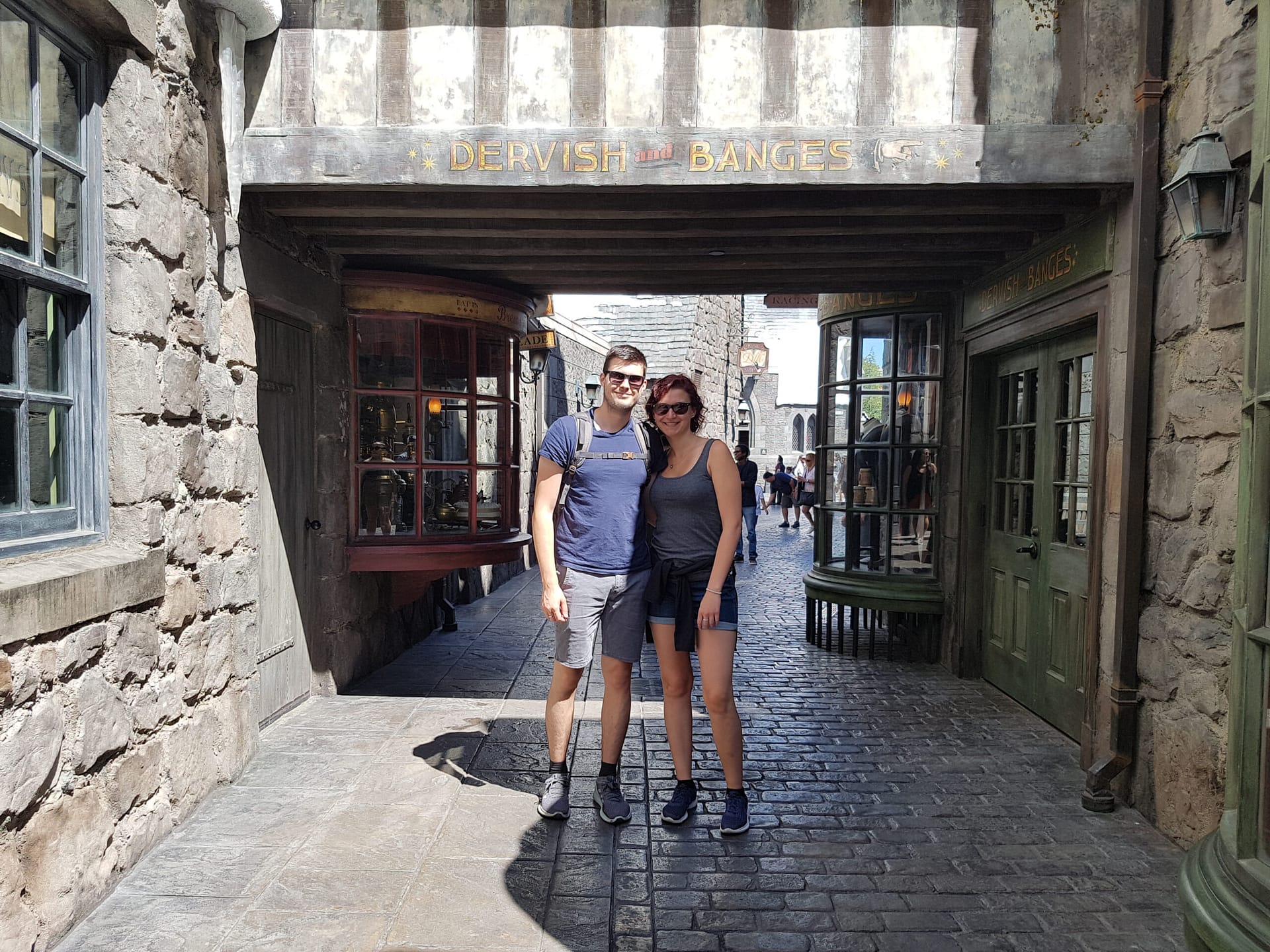Heute besuchen wir die Universal Film Studios. Wir machen uns schon früh auf den Weg, da wir möglichst viel Zeit dort haben möchten. Auch hierfür haben wir unsere Tickets bereits online gebucht, was uns heute viel Zeit in einer langen Schlange vor den Schaltern und auch einiges an Geld erspart. Wir machen uns nach unserer Ankunft direkt auf den Weg zum noch relativ neuen Harry Potter / Hogwarts Gelände, da wir schon gehört haben, dass es dort sehr schnell unglaublich voll wird und man dann gut und gerne mal 3 Stunden anstehen muss, um mit dem dortigen Fahrgeschäft zu fahren.