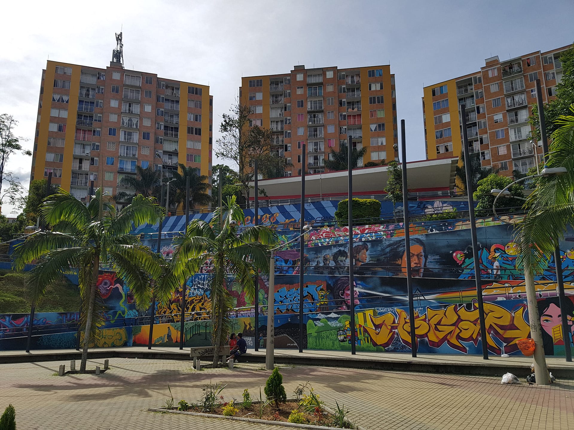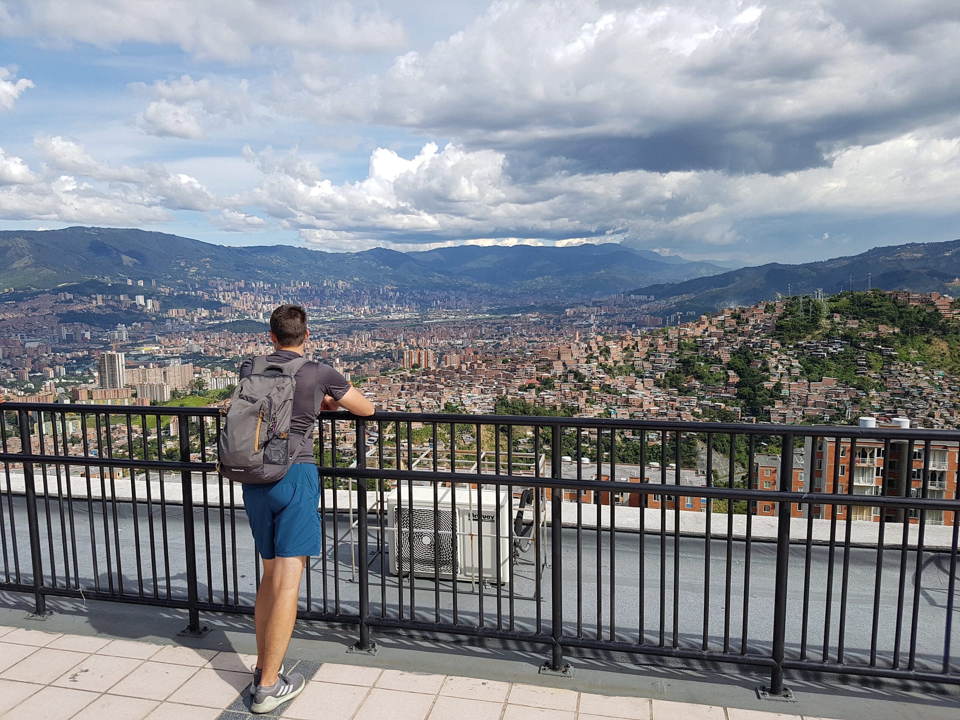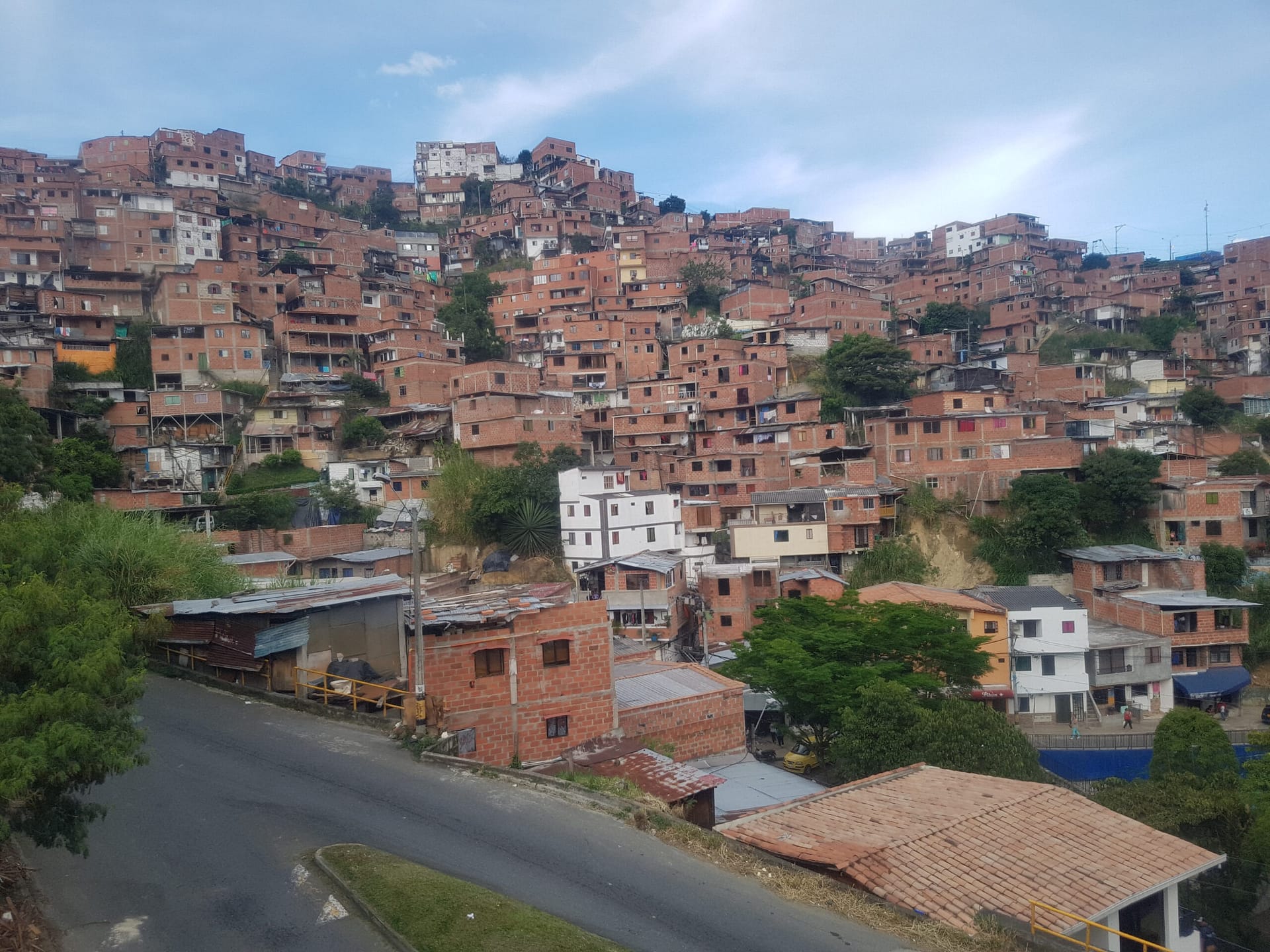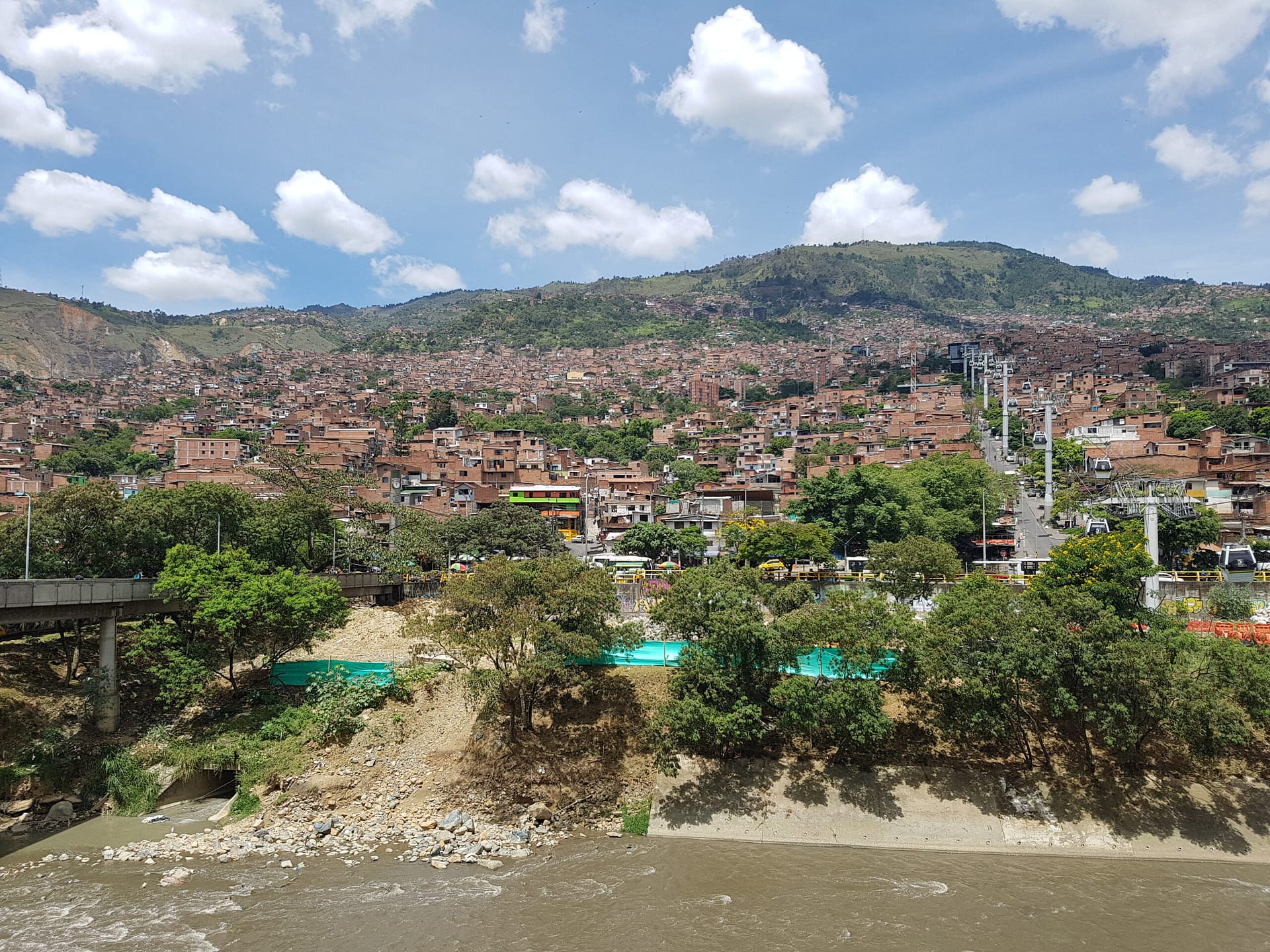Auf jeden Fall entschließen wir uns deswegen heute etwas langsamer zu machen. Nach einem geilen Frühstück mit Rührei, frischer Mango sowie Ananas nehmen wir die Metro, um ans andere Ende der Stadt zu fahren und unser erstes Cable Car zu nehmen. Es geht über die ärmsten Bezirke Medellíns hinweg auf einen Berg mit tollem Blick auf die Stadt. Für umgerechnet 60 Cent kann man den ganzen Tag Metro und Cable Car fahren, wenn man das Metrosystem nicht verlässt.