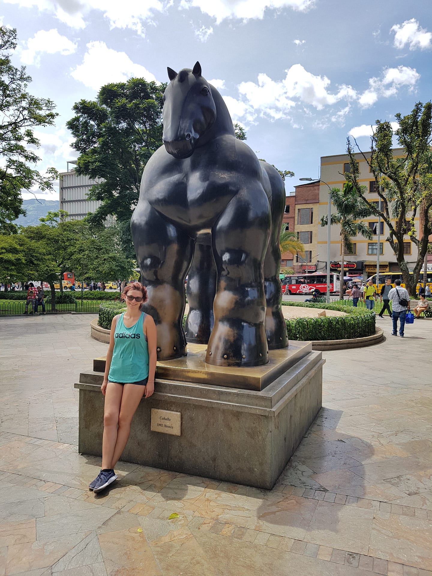 Leider können wir nicht ganz hoch auf den Aussichtspunkt, weil die zweite Bahn heute gewartet wird. Von daher beschließen wir ins Stadtzentrum zurück zu fahren und ein anderes Cable Car zu nehmen. Auf dem Weg dorthin steigen wir am Parque de Berrío aus und besichtigen den Platz mit den vielen von Botero geschaffenen Statuen bevor wir uns zum Mittag ein leckeres halbes Hähnchen mit frischem Maracuja- und Erdbeersaft gönnen.