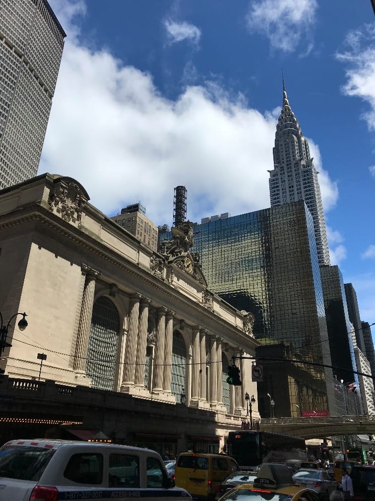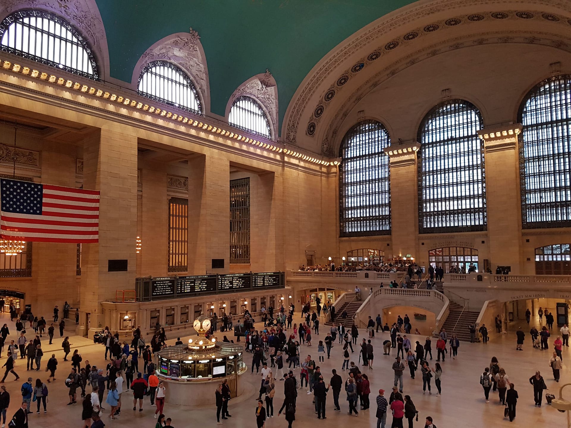 Tag 2/3 in New York begann mit ausschlafen, da wir noch etwas müde waren und es sowieso bis Mittag regnete. Nachdem wir dann mal aufgestanden sind, haben wir uns erst zum Grand Central Terminal aufgemacht (Achtung: nicht nach „Central Station“ suchen. Da kommt man am Madison Square Garden raus….wir haben da gewisse Erfahrungen). Das Terminal hat uns mit seiner riesigen Größe, den viele verschiedenen Gängen auf mehreren Stockwerken sowie einem überdimensionalen Apple Store sehr beeindruckt. Allerdings empfanden wir es auch zum Teil erdrückend, da dort Menschenmassen durchlaufen und die Lautstärke insgesamt sehr hoch ist.
