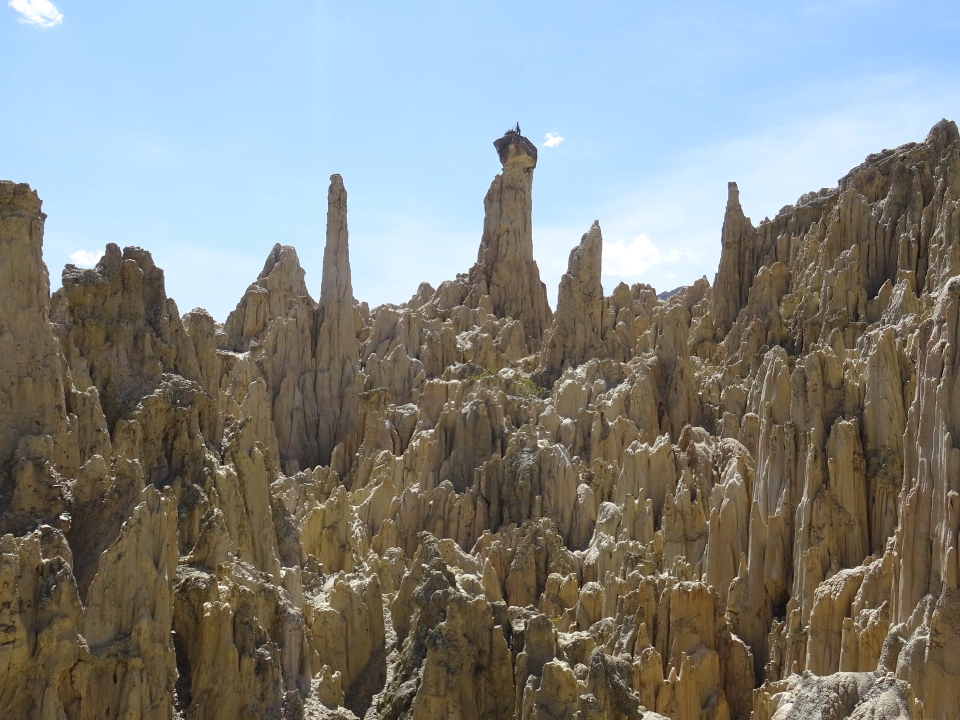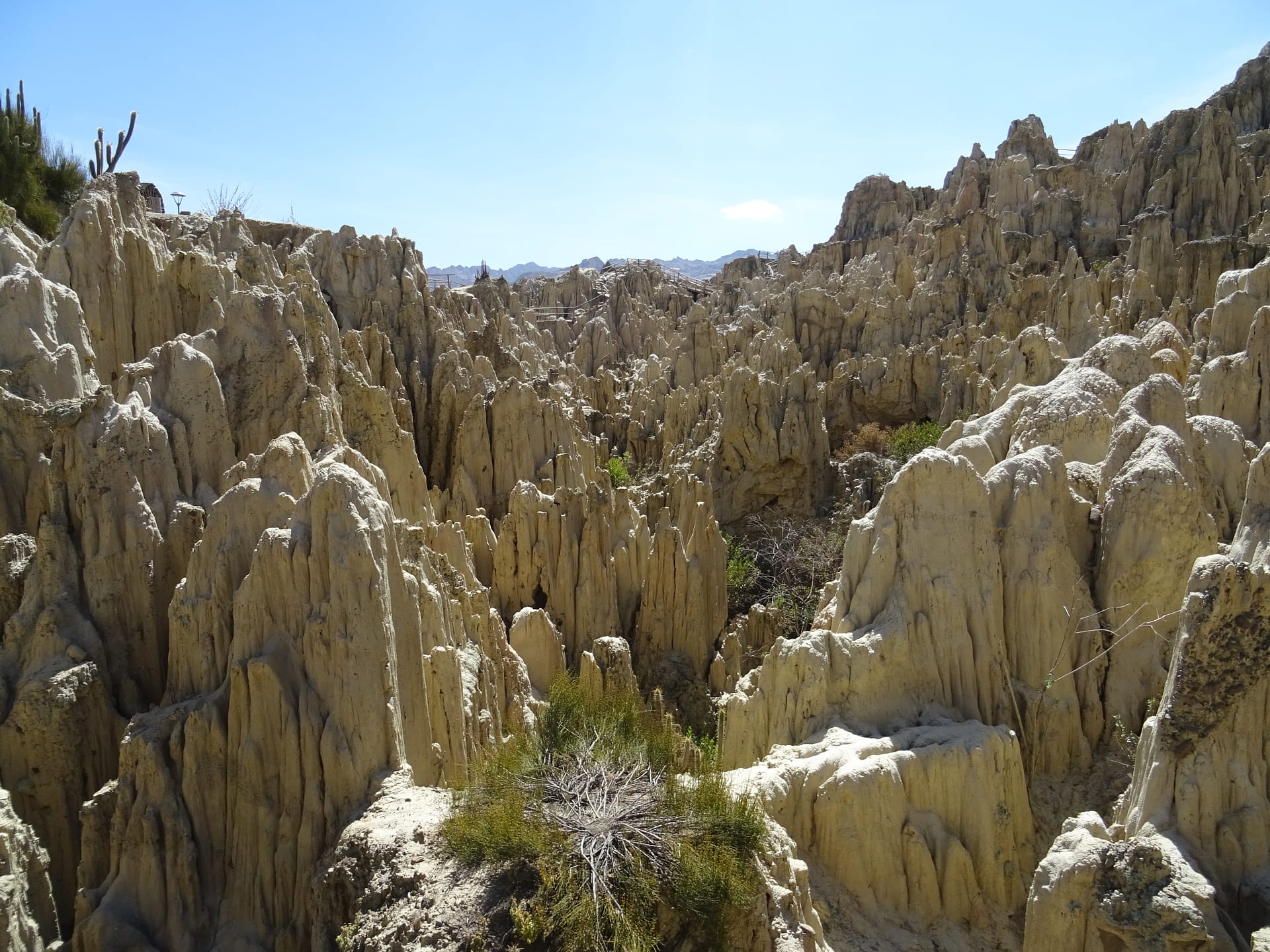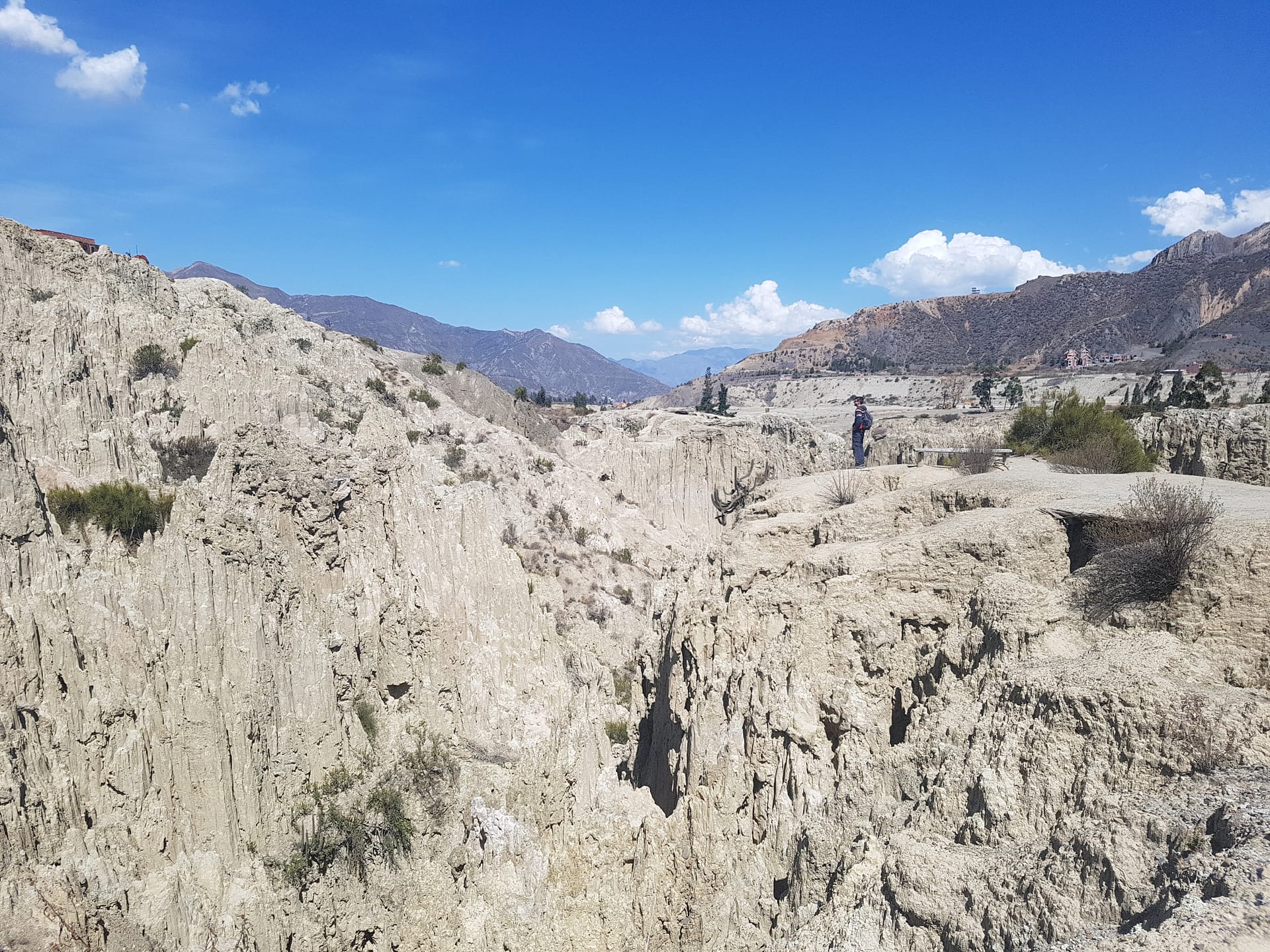 Auf dem Rückweg nach La Paz halten wir noch für eine Stunde am Moon Valley an, um uns diese ungewöhnliche Landschaft auch noch anzuschauen.