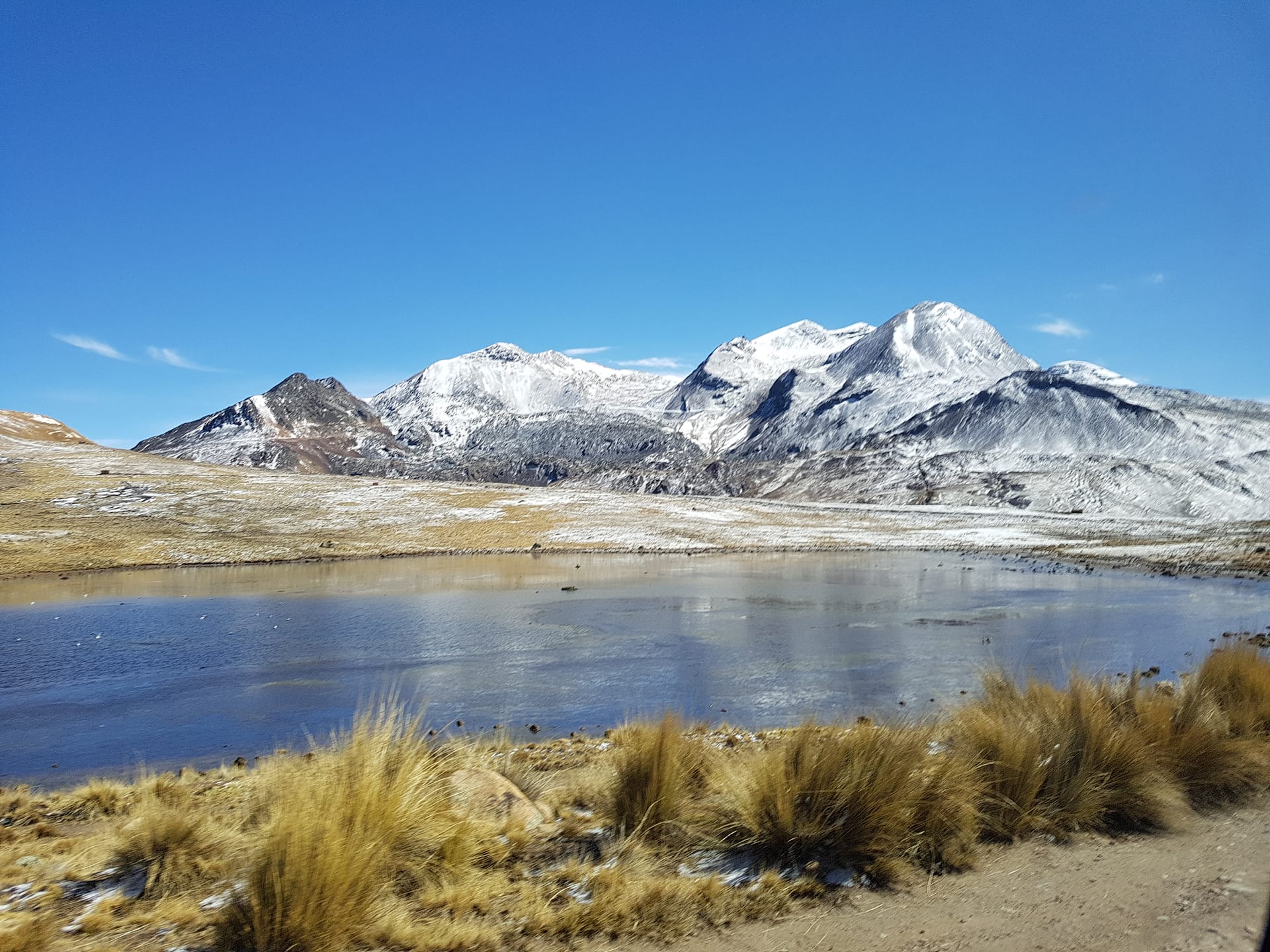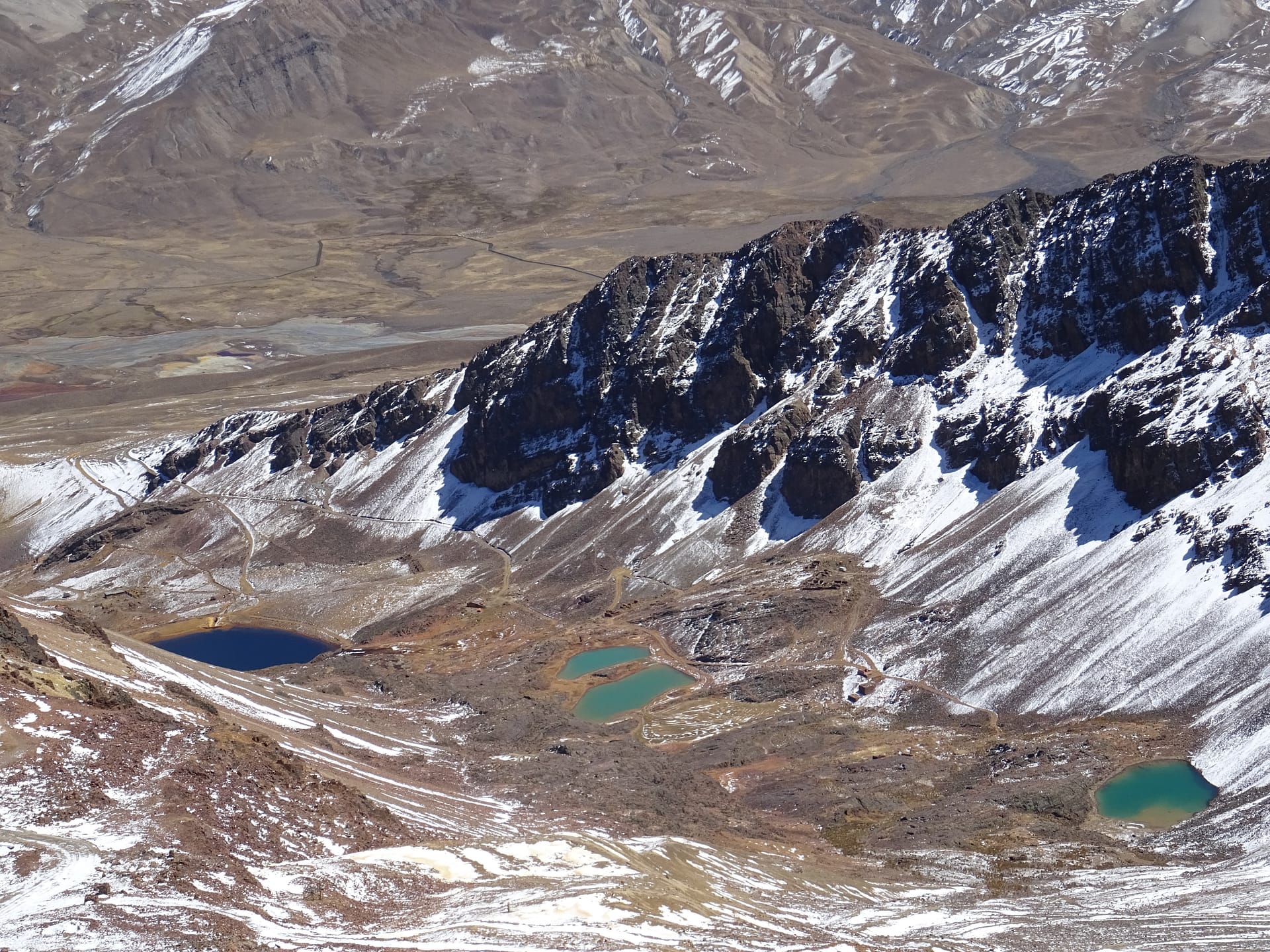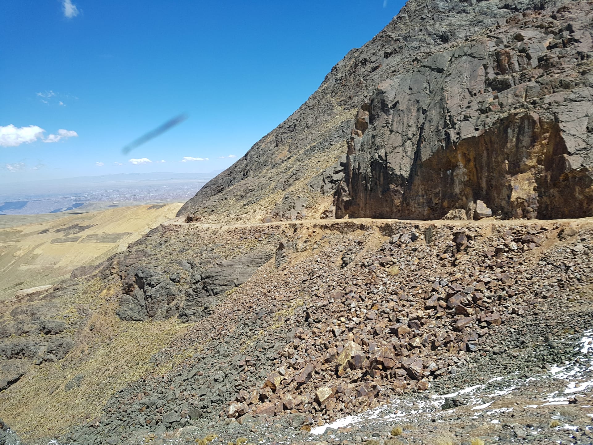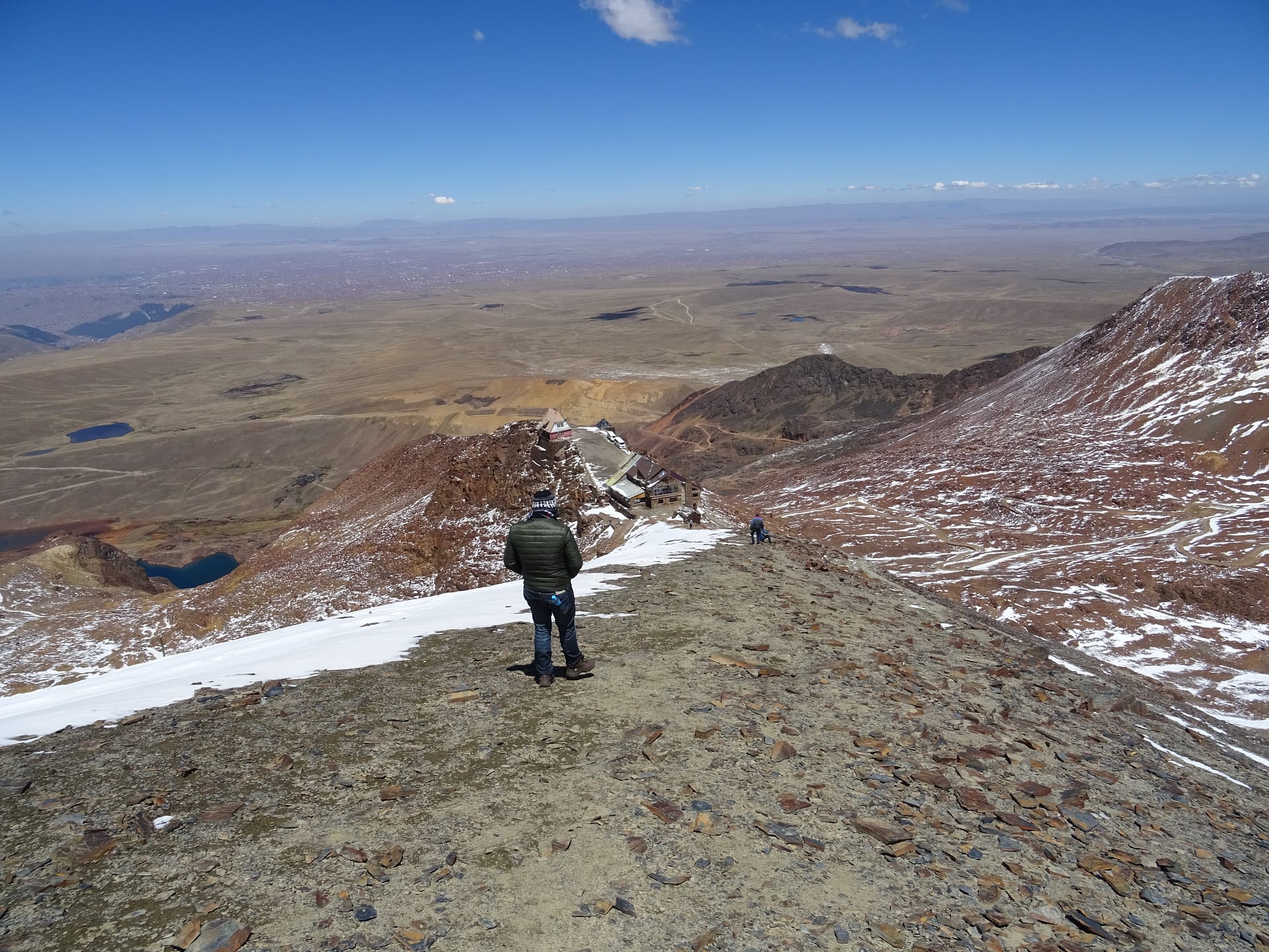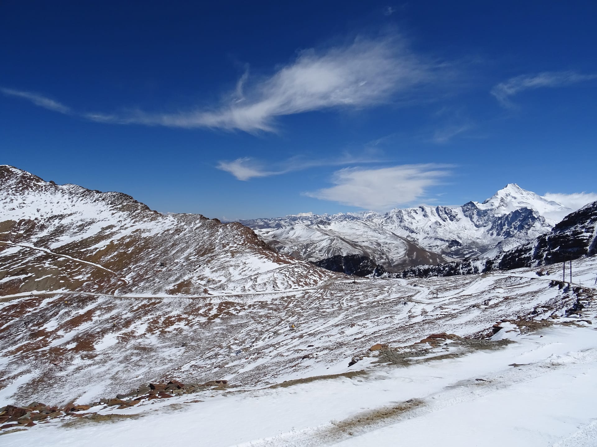 Früh morgens werden wir abgeholt zu unserer Tour zum Chacaltaya. Der Bus ist relativ alt, klein und besitzt kaum (mehr) Stoßdämpfer, was den Magen ziemlich umkrempelt. Da es letzte Nacht geschneit hat, sind die Straßen hoch zum Berg mit recht viel Neuschnee bedeckt, was dazu führt, dass wir knapp 2km vorher aussteigen und hochlaufen müssen… bzw. dürfen, da es uns im Bus mit direktem Steilhang daneben sowieso nicht so gut gefallen hat.