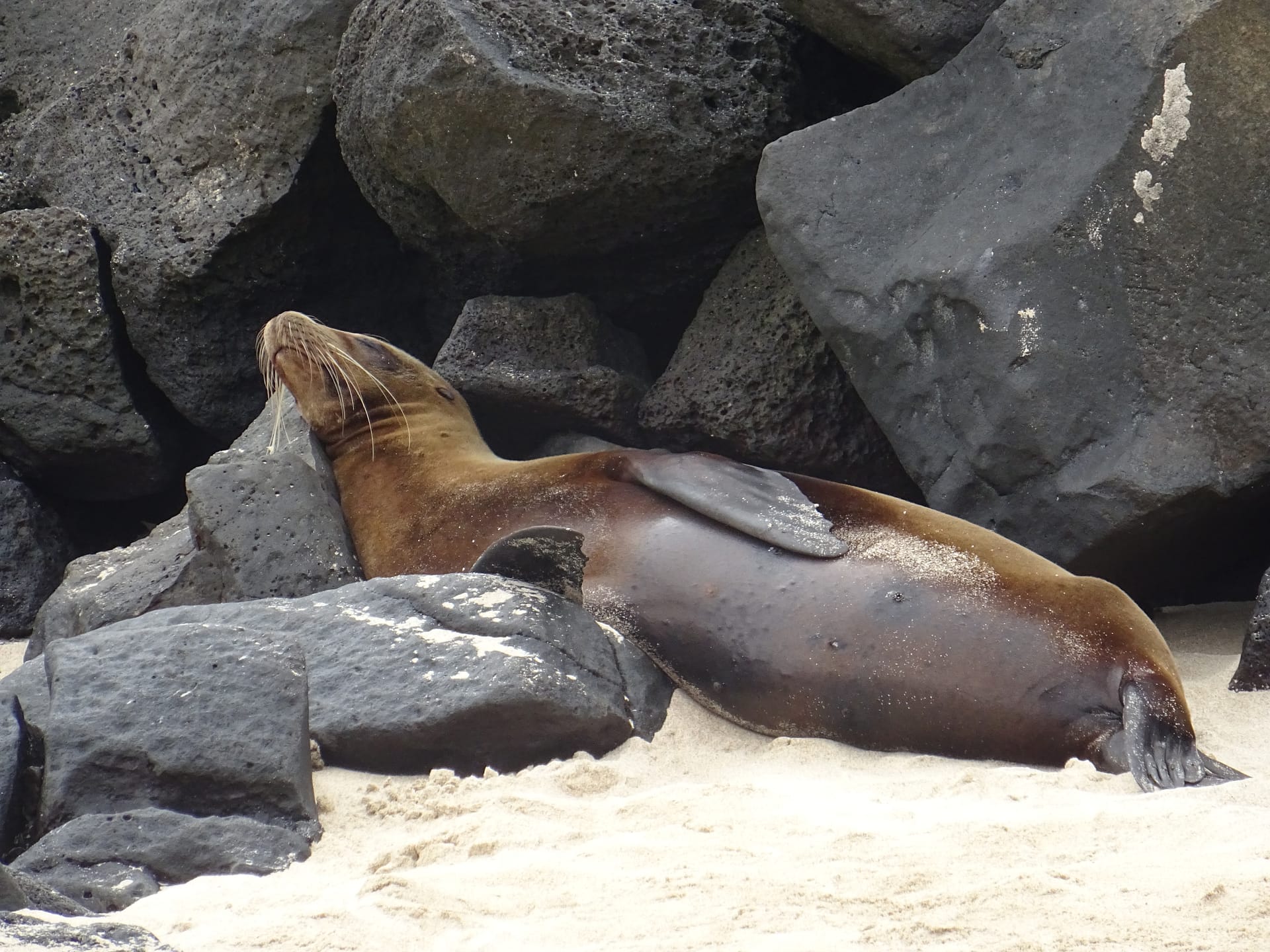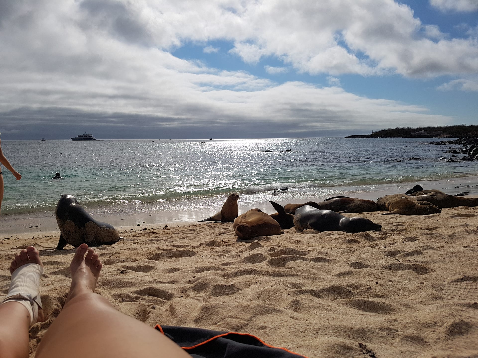 Mit diesem doch recht guten Gefühl, dass unsere Machu Picchu Tour in knapp 2 Wochen nicht in Gefahr ist, verlassen wir das Krankenhaus. Wir holen ein paar Sachen aus dem Hostel und gehen dann zum Playa Mann. Hier bekommt Alina ihren Platz direkt neben unzähligen Robben, denen der Strand de facto gehört.
