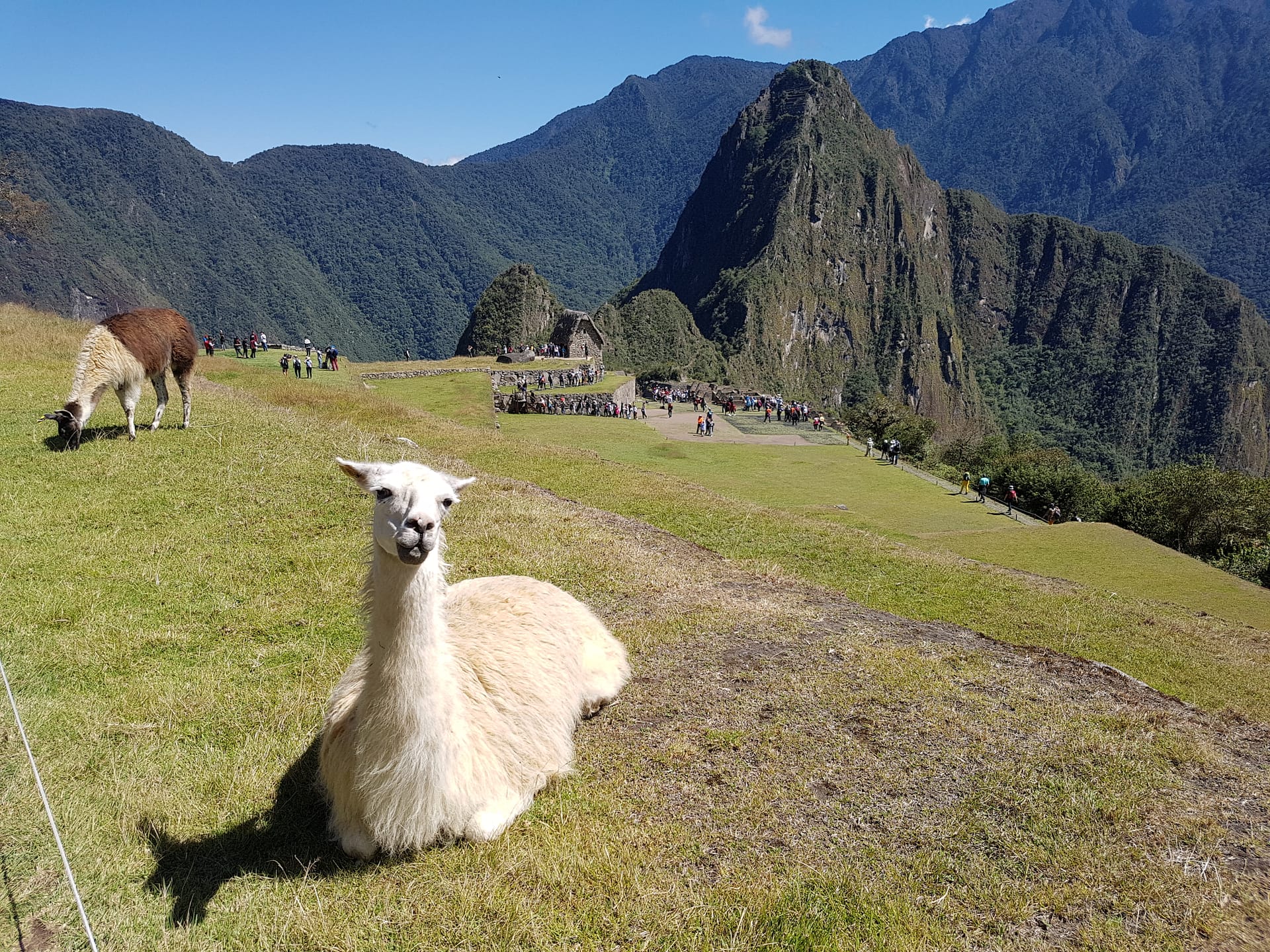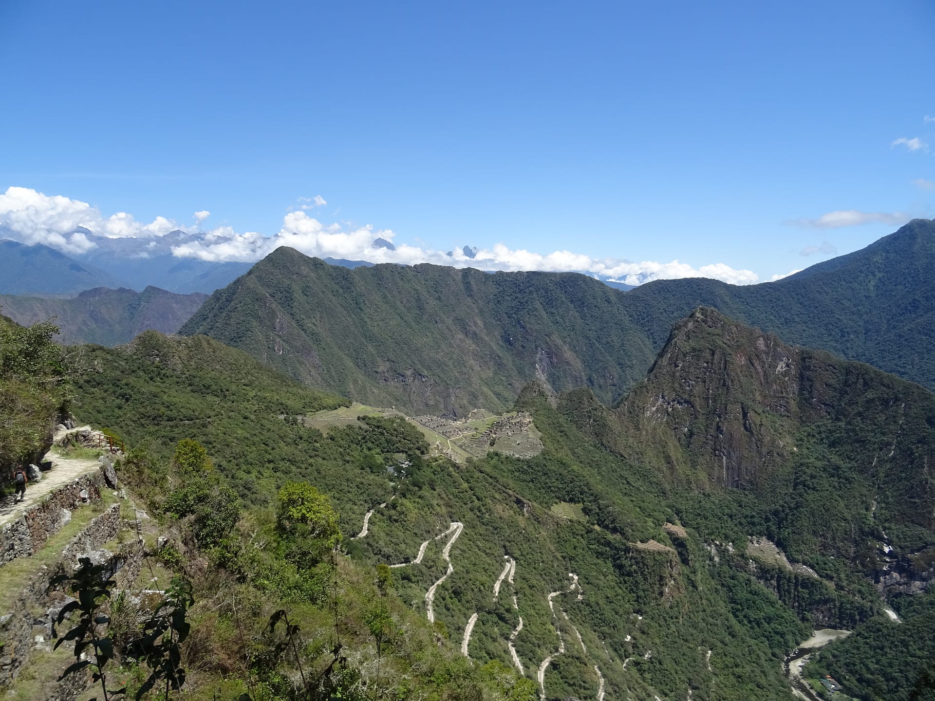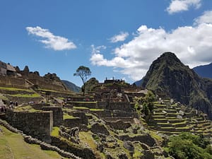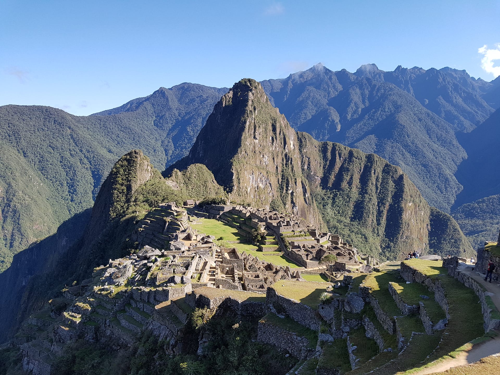 Der Blick auf Machu Picchu bei Sonnenschein, blauem Himmel und ein paar leichten Wolken ist gigantisch und belohnt für die Strapazen der letzten Tage.