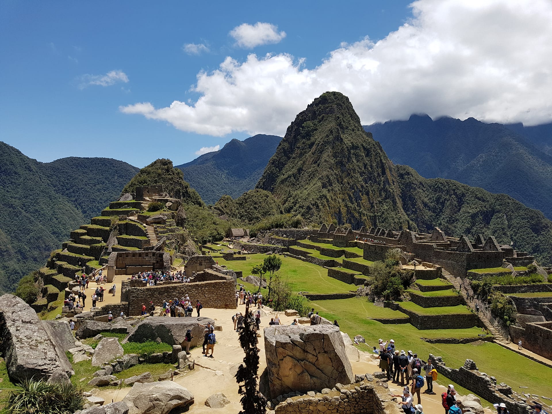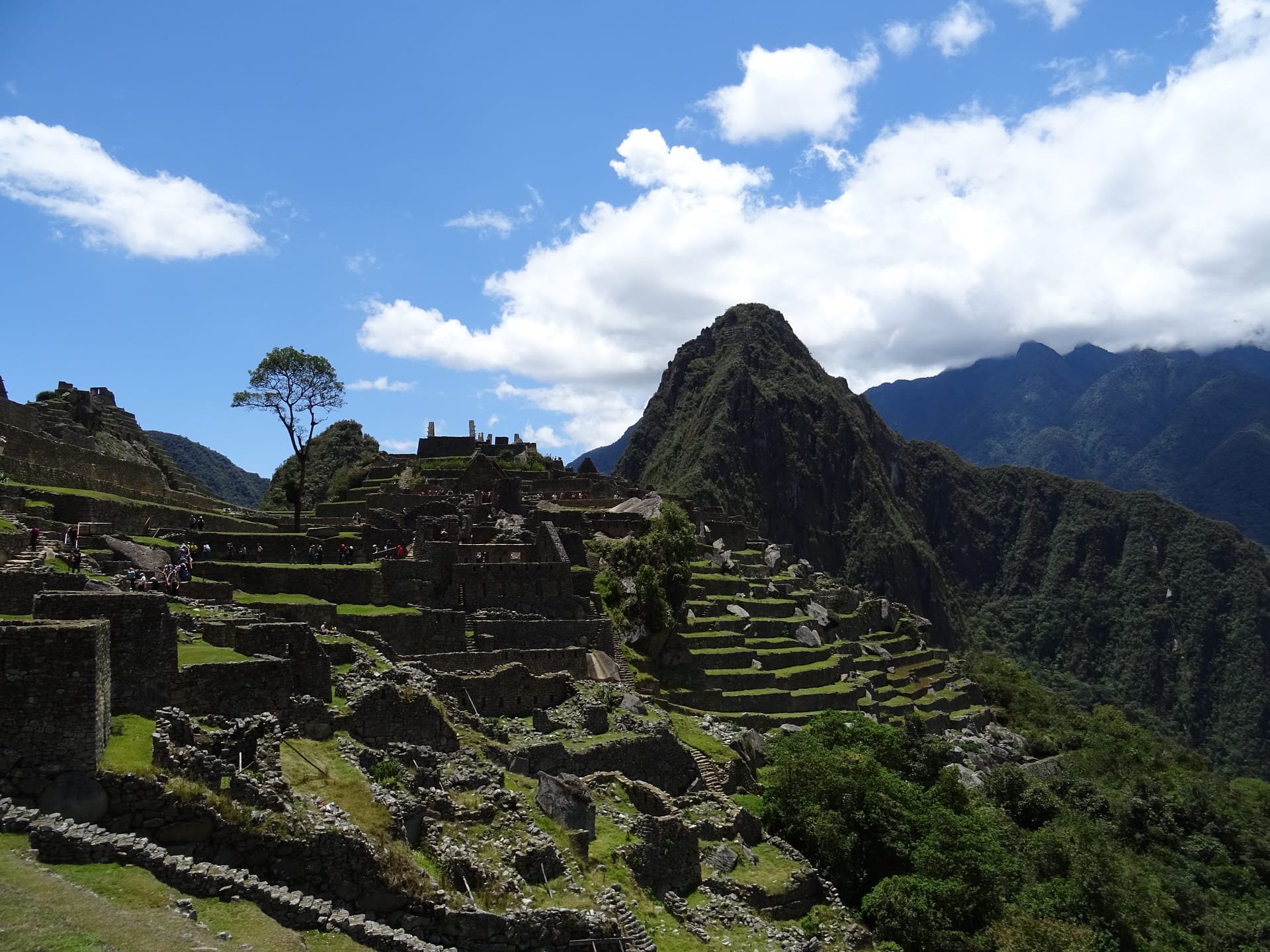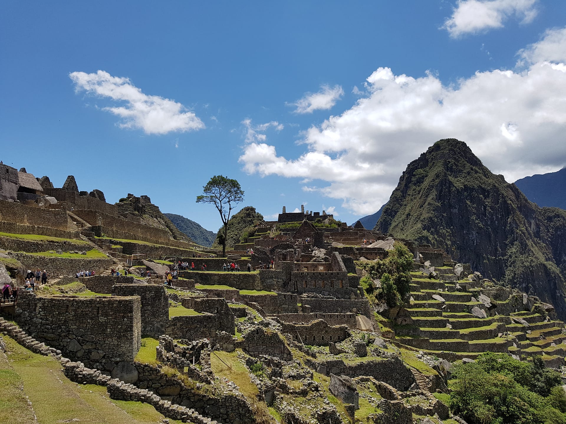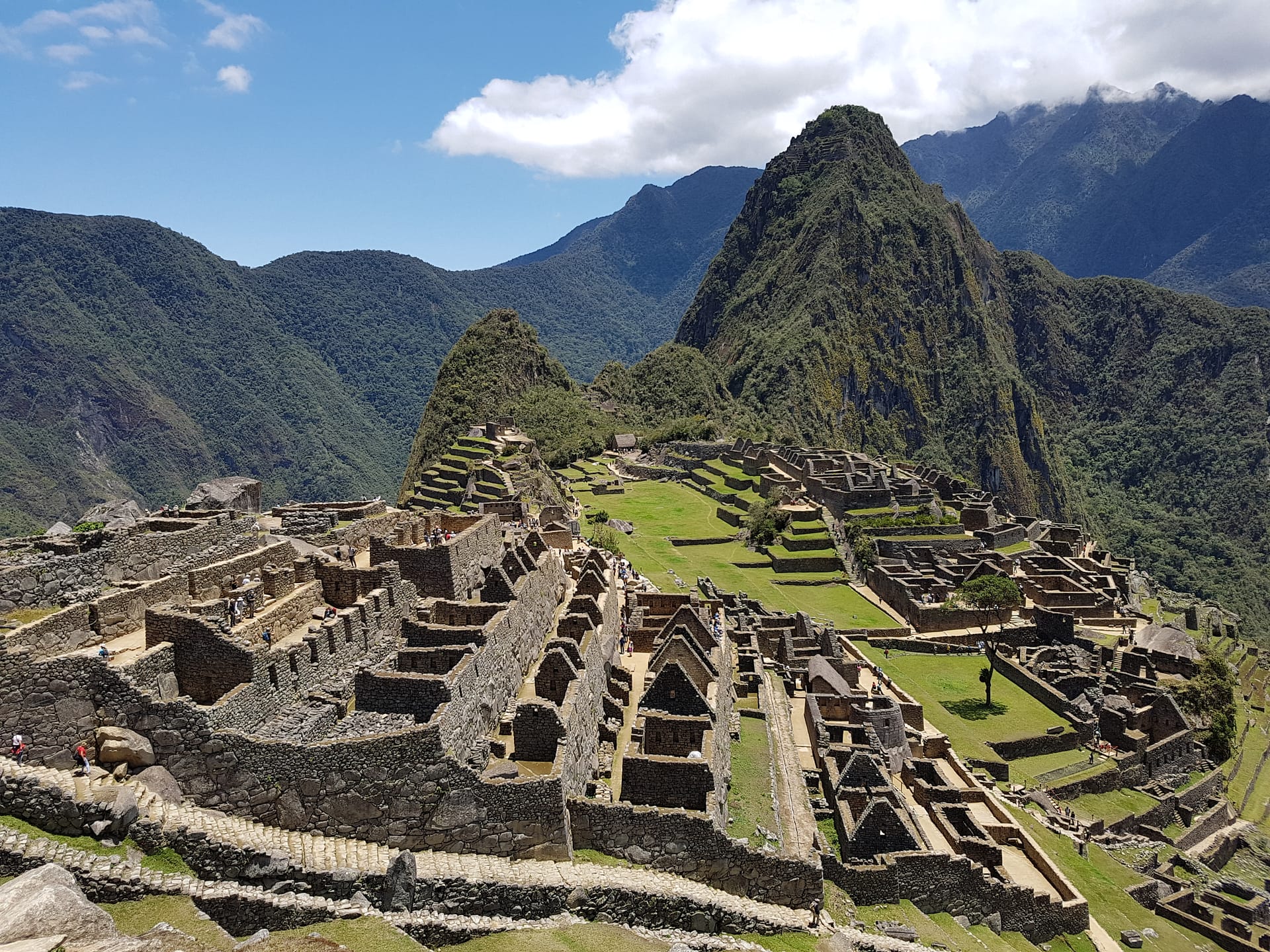 Der Blick auf Machu Picchu bei Sonnenschein, blauem Himmel und ein paar leichten Wolken ist gigantisch und belohnt für die Strapazen der letzten Tage.
