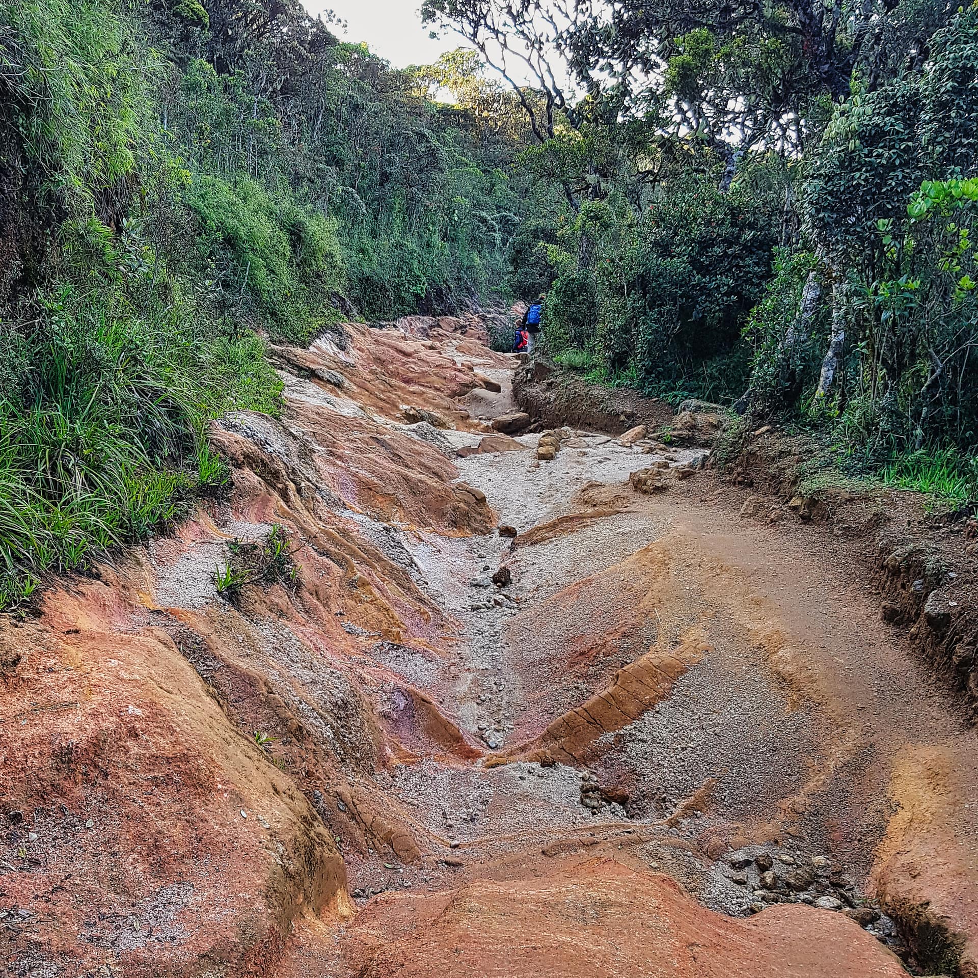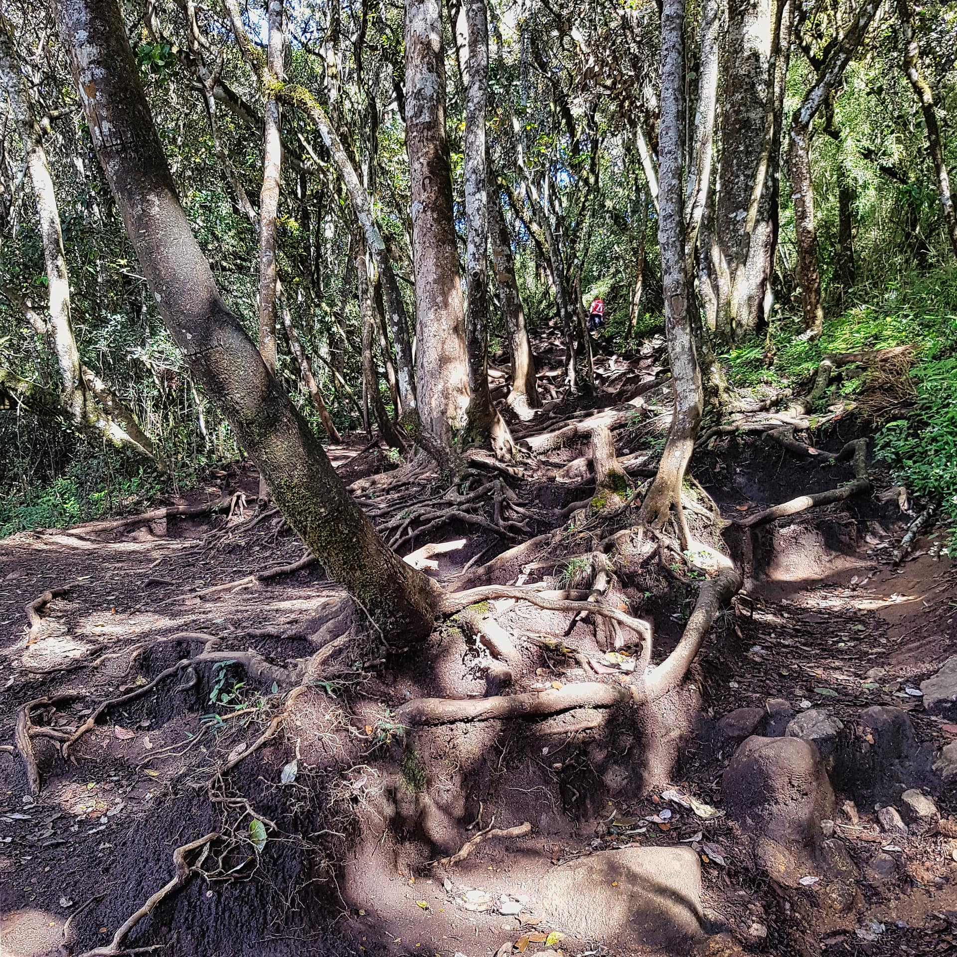 Diesen bestiegen wir am folgenden Morgen in aller Frühe. Der etwa zweistündige Aufstieg war ein echtes Abenteuer: Die Route war eine stellenweise enge Einbahnstraße, gespickt mit teils wackelig aussehenden Leitern. Trotz des kleinen Ärgernisses über ungeduldige Überholer wurden wir oben mit einer wunderschönen, weiten Aussicht über die zentrale Ebene reichlich belohnt.
